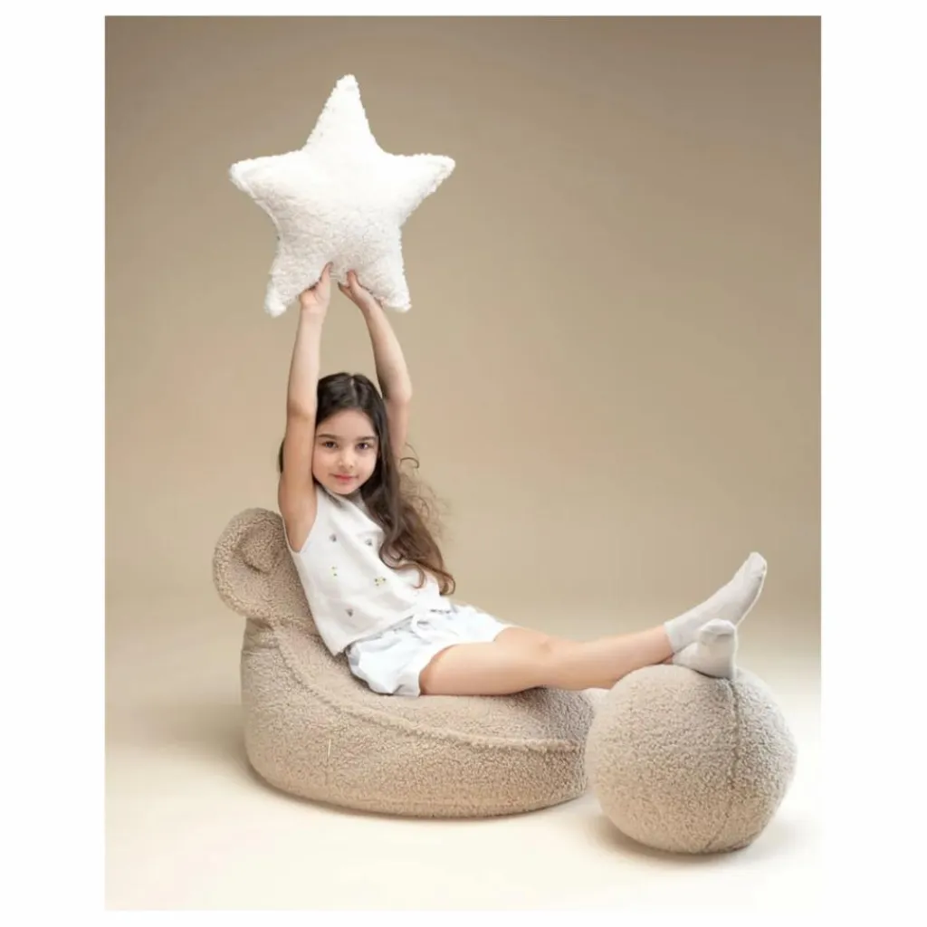- Voici le nouveau compagnon câlin de votre enfant : le pouf ours Biscuit, qui allie un design adorable à une fonction de tous les jours. Avec sa charmante silhouette en forme d’ours et sa chaude teinte biscuit, ce pouf ours apporte personnalité, confort et une touche ludique à l’espace de votre enfant. Le pouf ours ajoute une touche douillette et ludique à une chambre d’enfant. Conçu pour les enfants, c’est l’endroit idéal pour lire, se détendre et se relaxer après une longue journée. Fabriqué à partir de matériaux doux et de haute qualité, ce pouf facile à déplacer est conçu pour le confort et le style, et ses petites oreilles le rendent tout simplement irrésistible !