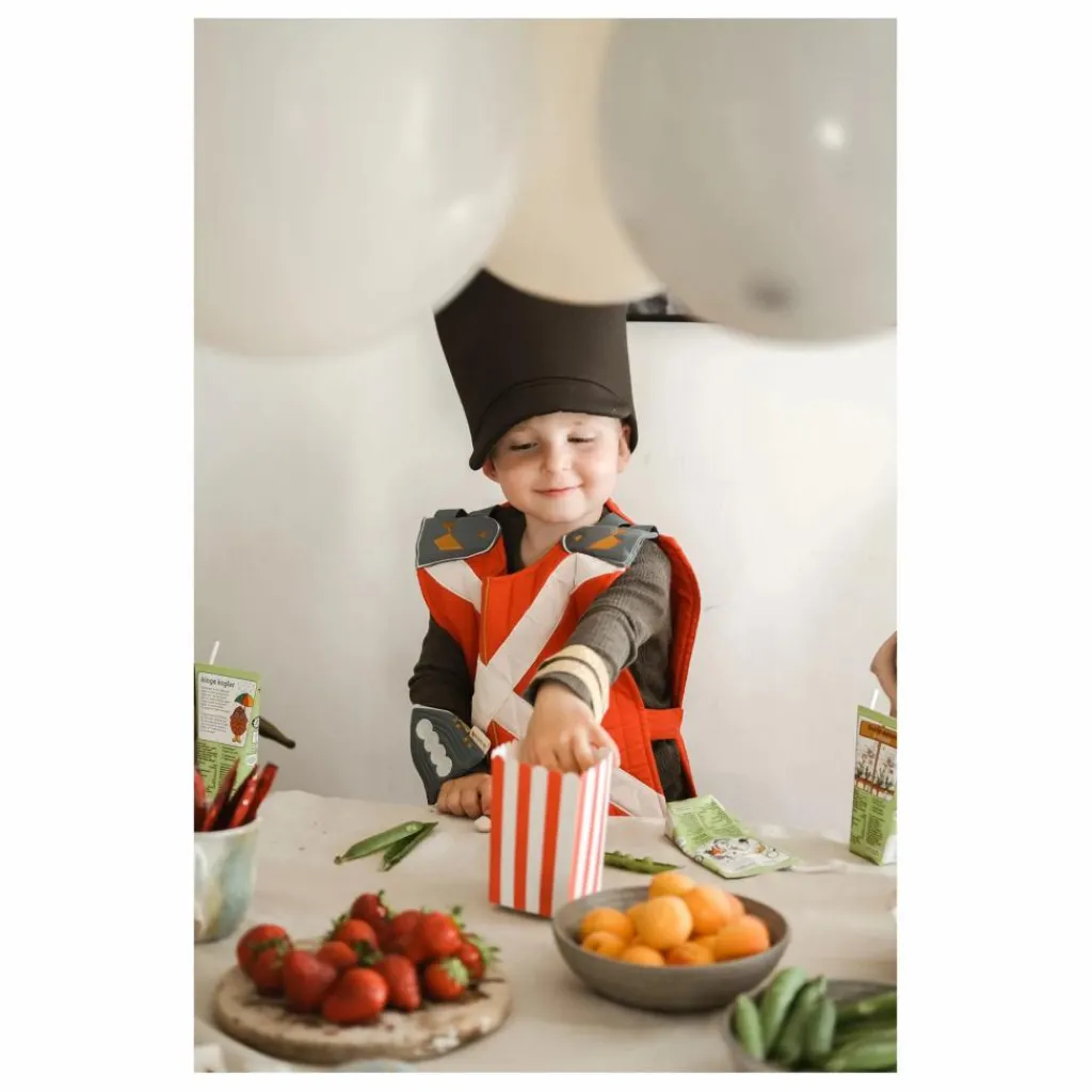 - Prêt à monter la garde comme une véritable garde royale danoise ! Avec la veste rouge emblématique et le grand chapeau noir, les petits peuvent se transformer en membres de la garde royale. L’ensemble de déguisement est conçu dans des matériaux doux et confortables, permettant des heures de jeu imaginatif. Parfait pour les jeux de rôle, les défilés dans le salon et les grandes aventures royales ! Recommandation d’âge 3-6 ans Norme européenne de sécurité des jouets – CE