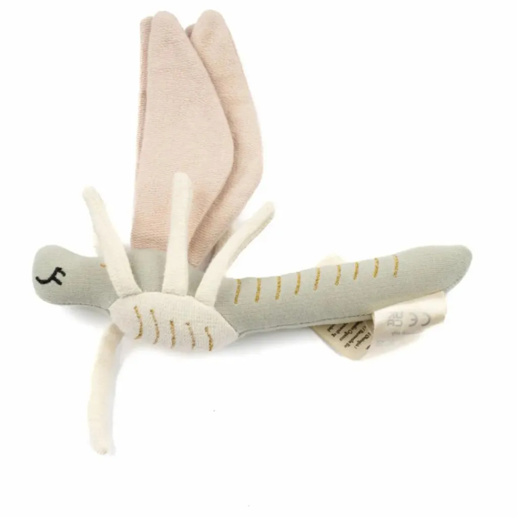 L’adorable libellule de Fabelab vole haut dans la magnifique vallée de l’arc-en-ciel, répandant un soleil éternel. Sous la forme d’un hochet doux, avec de longues ailes griffées et des points dorés, la libellule est conçue pour divertir et stimuler les sens de votre bébé, par le biais de ses mains, de ses oreilles et de son esprit avides.