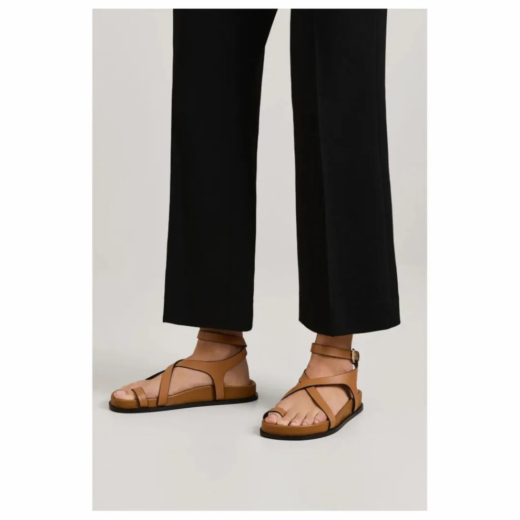 - Une itération de notre style le plus populaire, la Jalen Slim repose sur notre semelle plantaire moulée, avec un maintien des orteils et deux brides croisées qui enveloppent le pied et se terminent par une boucle dorée souple autour de la cheville.