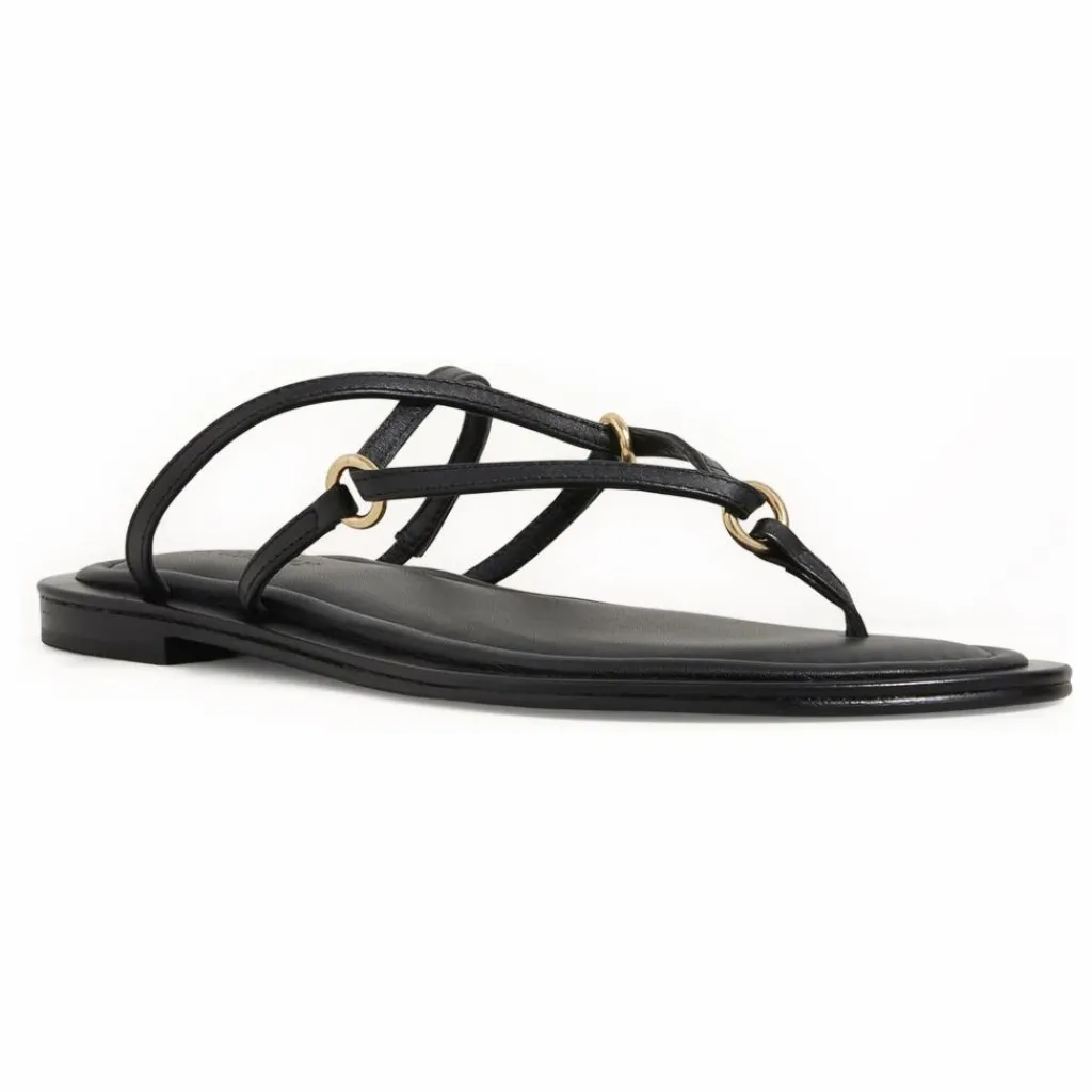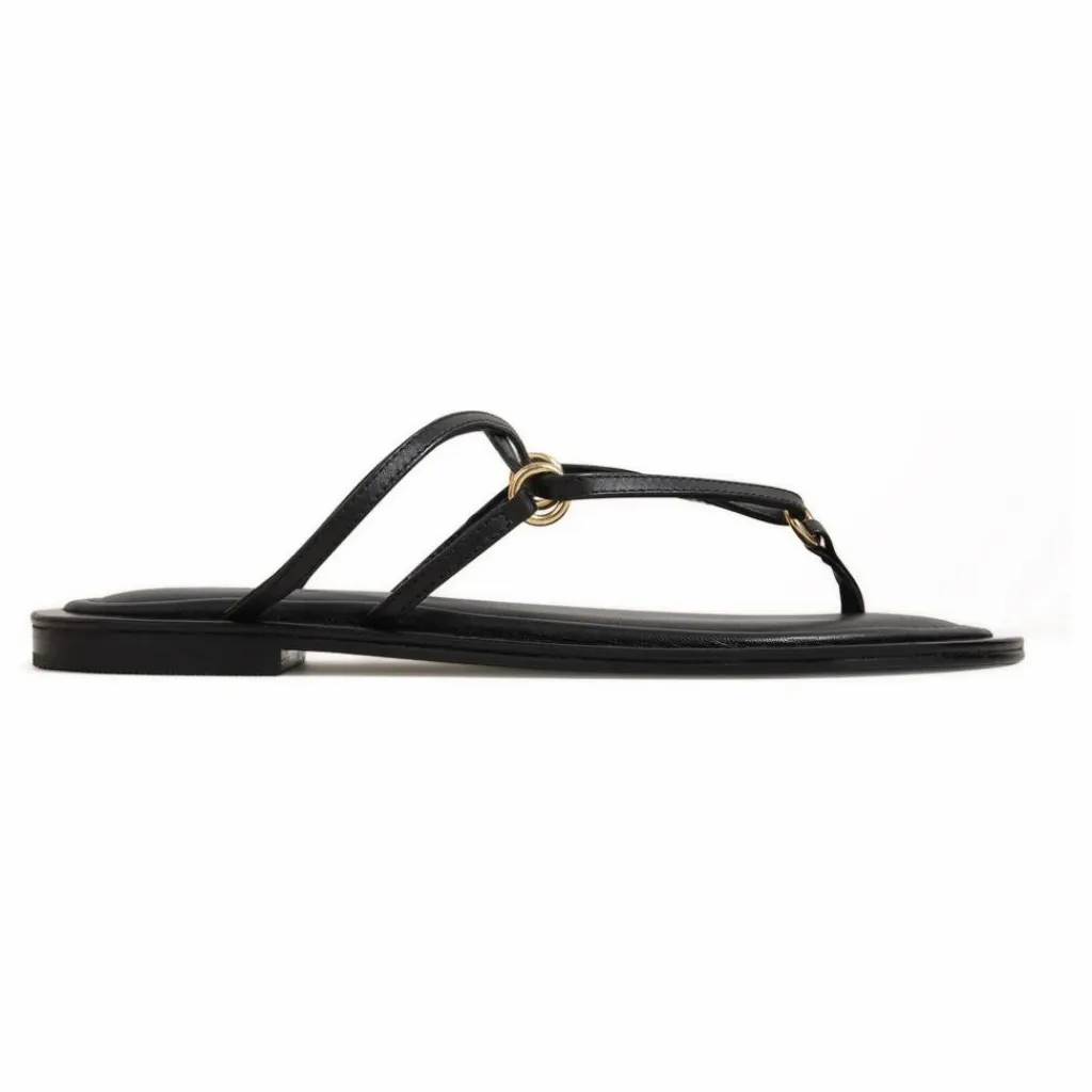 - Posée sur une généreuse assise plantaire en cuir doublement soudée, la sandale Nanaka est dotée de fines lanières qui s’entrelacent dans des anneaux circulaires en métal, fixant le dessus du pied dans un mouvement croisé.