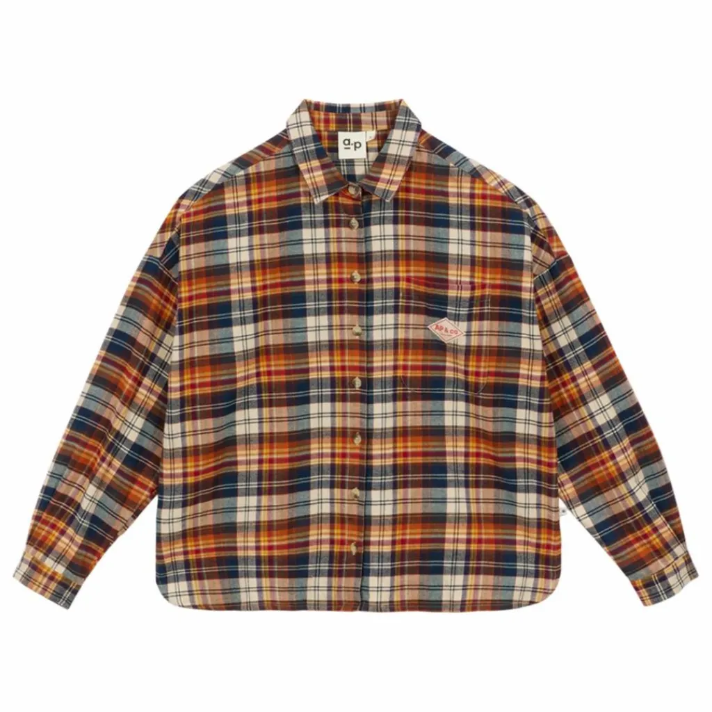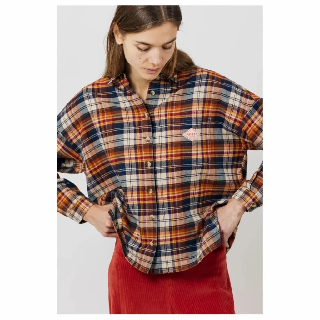 - Chemise femme a carreaux ecossais – Tissu a carreaux multico. – Manches longues avec poignets. – Col chemise. – Ouverture boutonnee au devant. – Poche poitrine avec etiquette « AP & CO ». – Bas de vetement arrondi et fendu aux cotes. – etiquette point bleu inseree dans la couture cote.