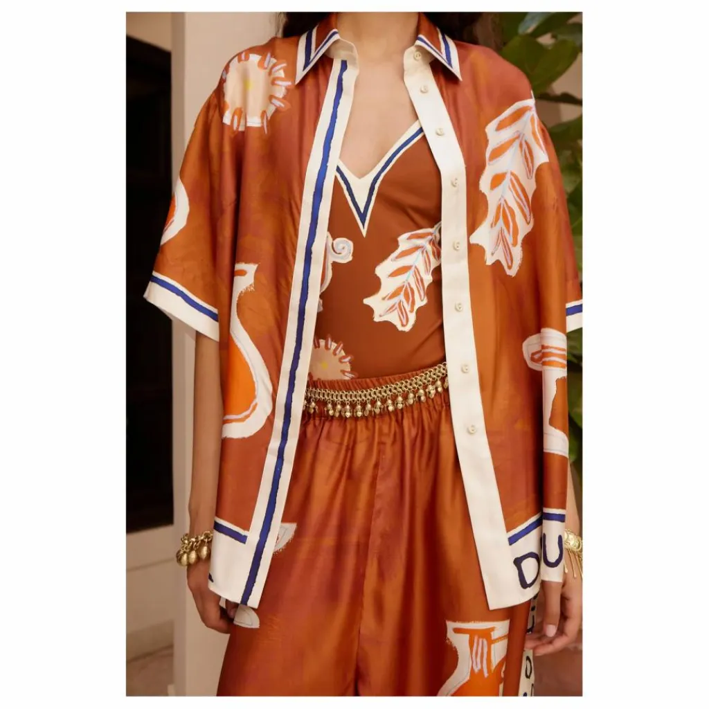 - – Oeuvre d’art en collaboration avec Laurence Leenaert – Silhouette de chemise décontractée – Col et pied de col pointus – Patte de boutonnage dissimulée avec boutons recouverts – Se référer aux photos du produit à plat pour une représentation fidèle de la couleur du produit.
