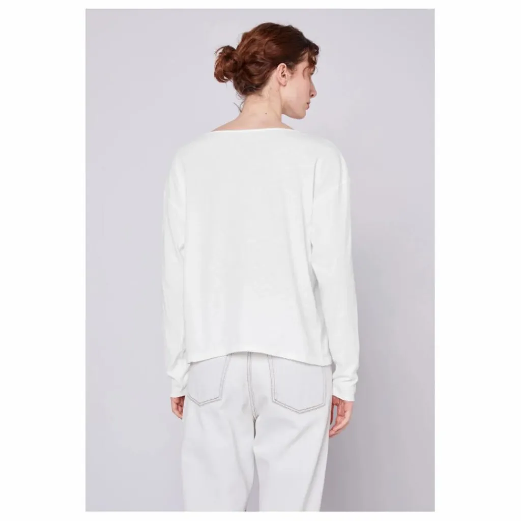 - Emmanchures basses, Encolure ronde, Finition surpiquée, Léger, Manches longues