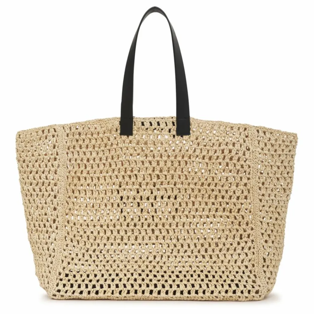 - Double anses, Logo à l’avant, Porté épaule, Porté main, Etiquette de marque cousue , Compartiment principal, Ajouré(s)