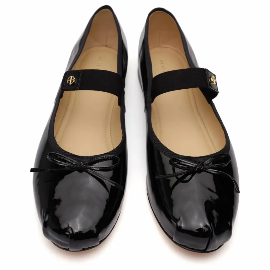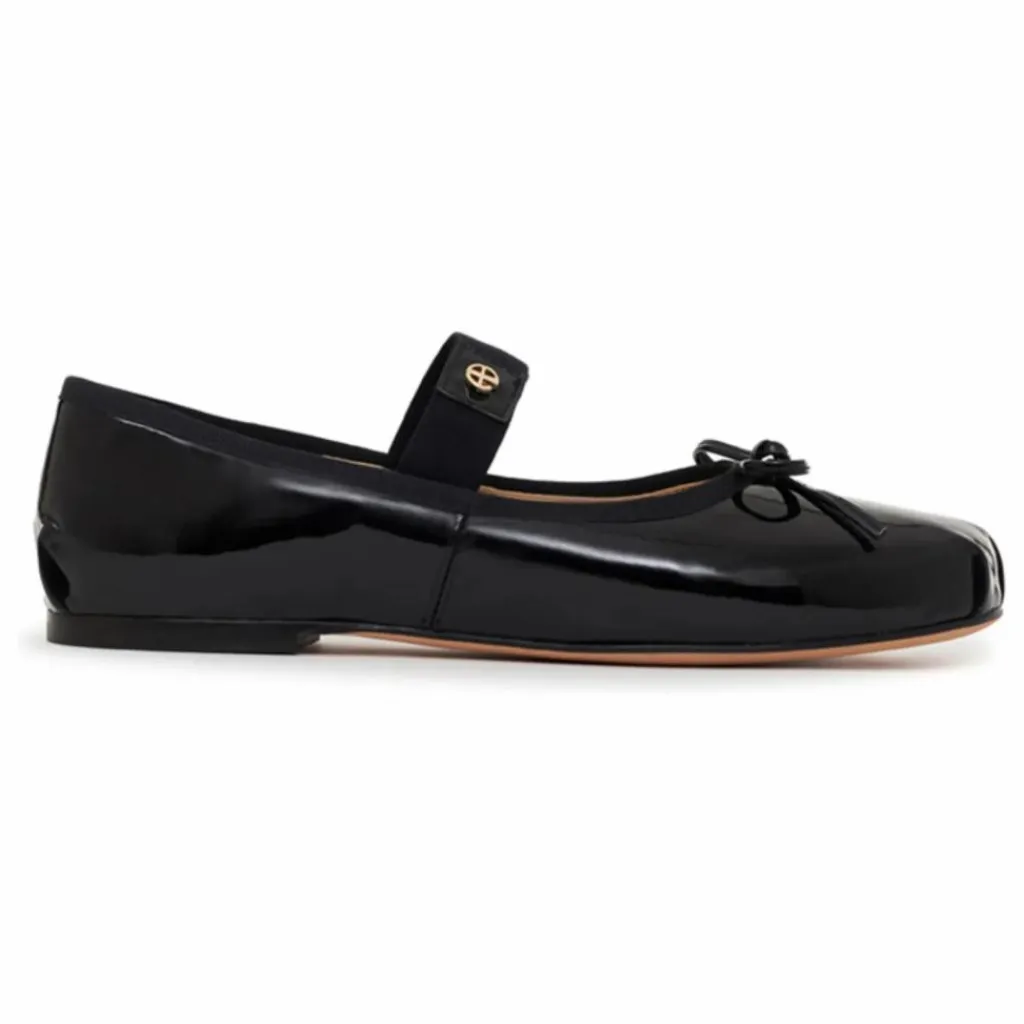 - Les chaussures plates Jolie sont fabriquées à partir d’un matériau brillant de 1