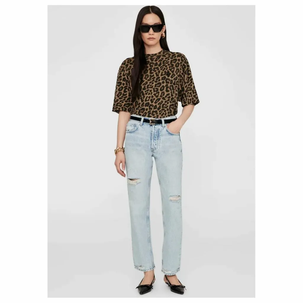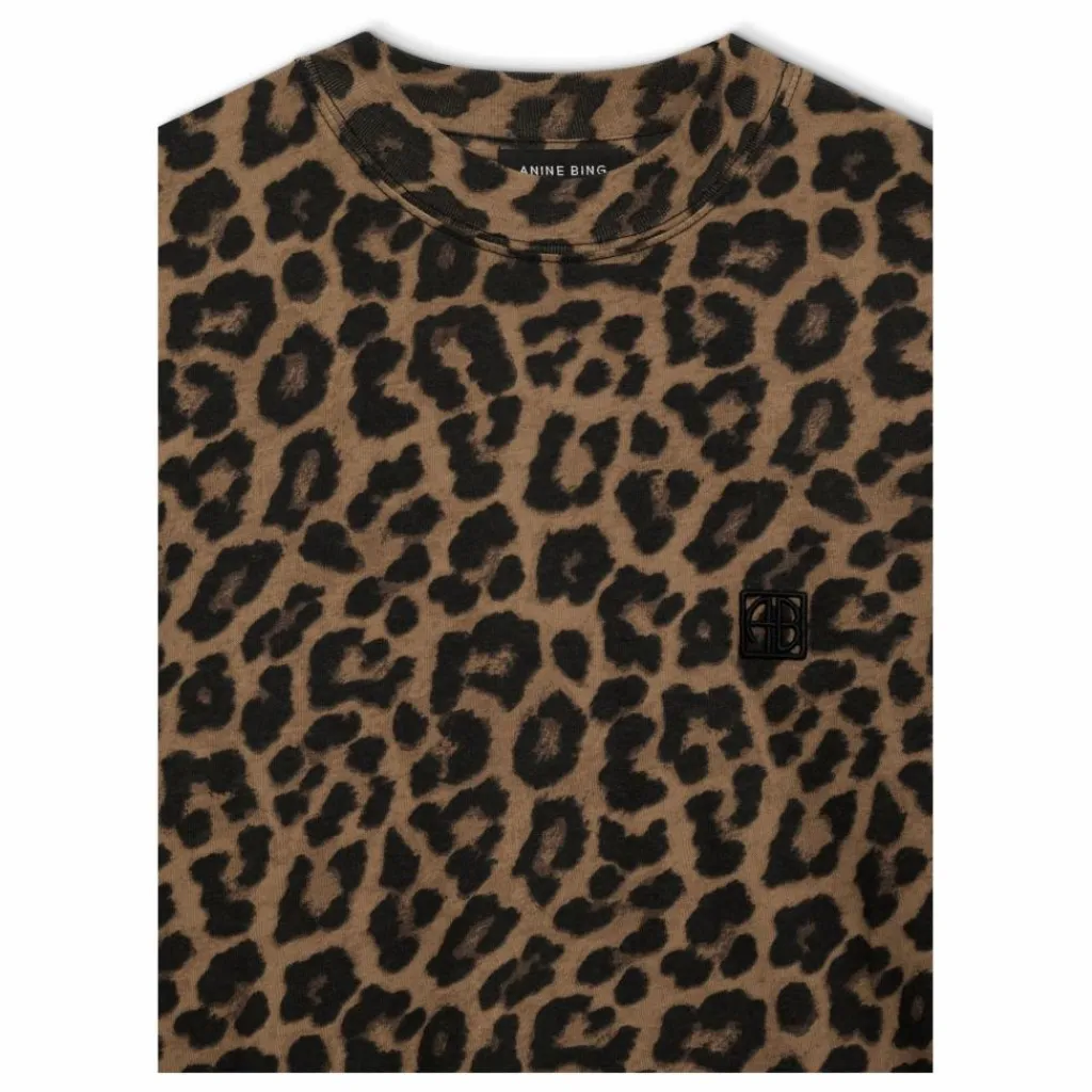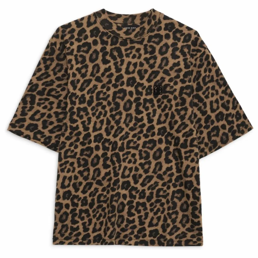 - Le tee-shirt Avi est un tee-shirt surdimensionné, de forme carrée, fabriqué en jersey léger 100 % coton, avec un imprimé léopard noir et marron.