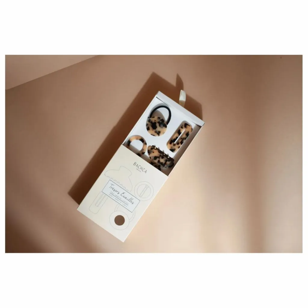 - Le coffret Trésors Écailles est les cadeau idéal pour toutes celles qui aiment soigner leurs coiffures avec des accessoires élégants et faciles à porter.
