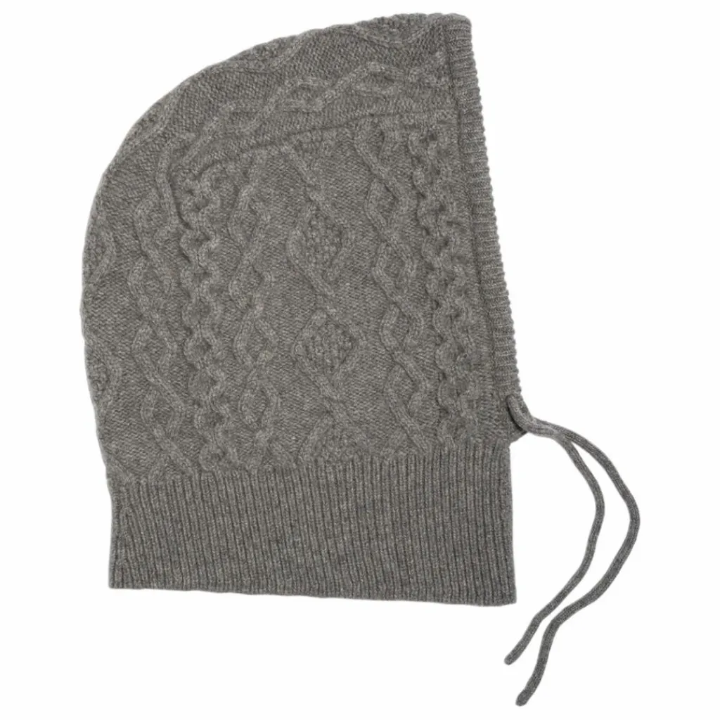 - Cagoule en cachemire avec jeu de torsades et liens de serrage.