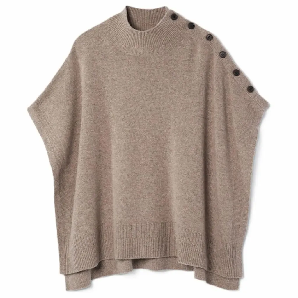 - Poncho en cachemire à col montant et boutonnage épaule. Finitions à fines côtes.