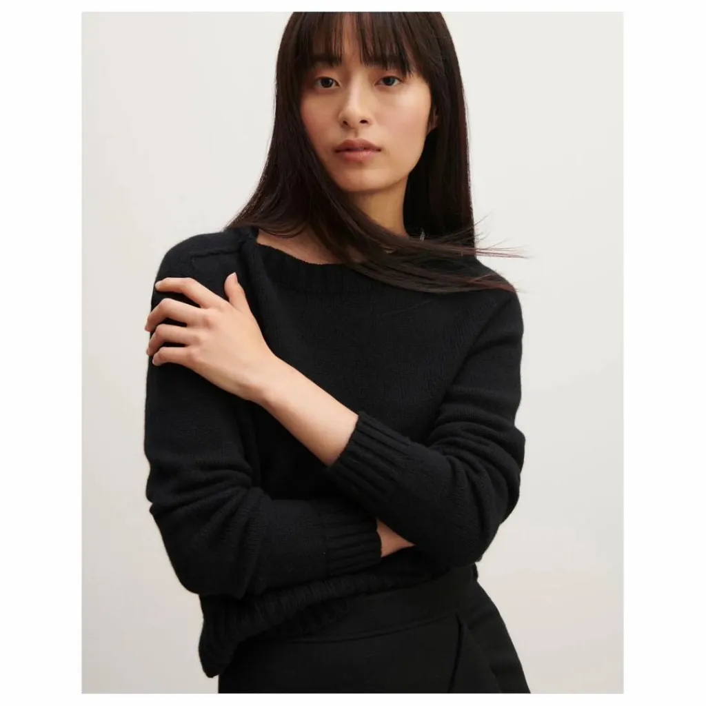 - Pull col rond en cachemire tricoté sans coutures.