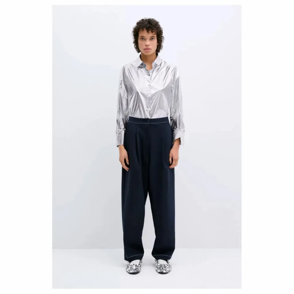 - En taillant le tissu avec un design contemporain, ils ont une large jambe droite détaillée avec des coutures contrastées sur le côté et les boutons, ainsi que des poches passepoilées à l’arrière. Ils sont l’élément de base parfait pour toute l’année.