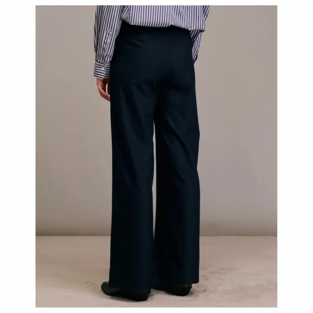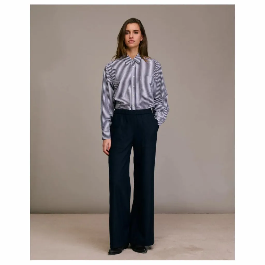 - Pantalon en lin aux jambes fluides et évasées et large ceinture élastiquée.