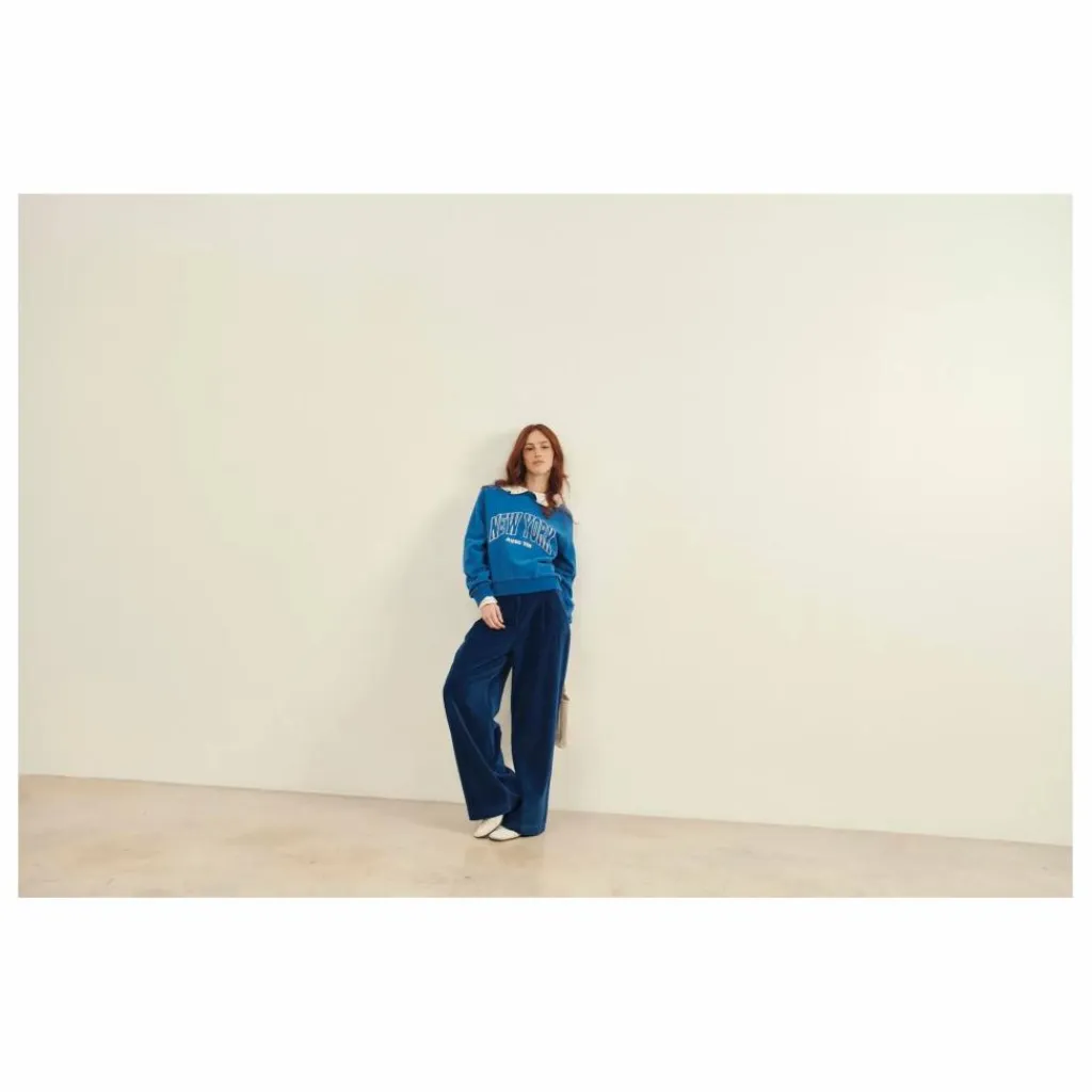 - Sweatshirt court en jersey de coton biologique molletonné noir imprimé sur le devant » New York avec toi « .