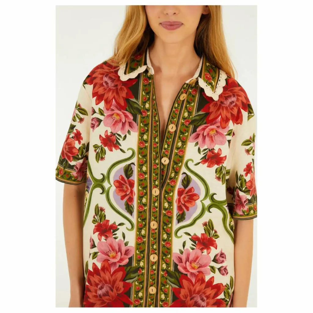 - La chemise en crochet Sand Wonder Rio de FARM Rio, fabriquée dans des tissus respirants Euroflax et Lenzing, vous séduira par son charme sans effort. Ce haut unisexe présente une silhouette décontractée avec une encolure classique, alliant confort et style. Ses détails au crochet évoquent une touche artisanale et ensoleillée, tandis que les teintes naturelles invitent à une ambiance calme et balnéaire. Parfait pour les moments où la facilité rencontre l’élégance discrète avec un esprit ludique et organique.