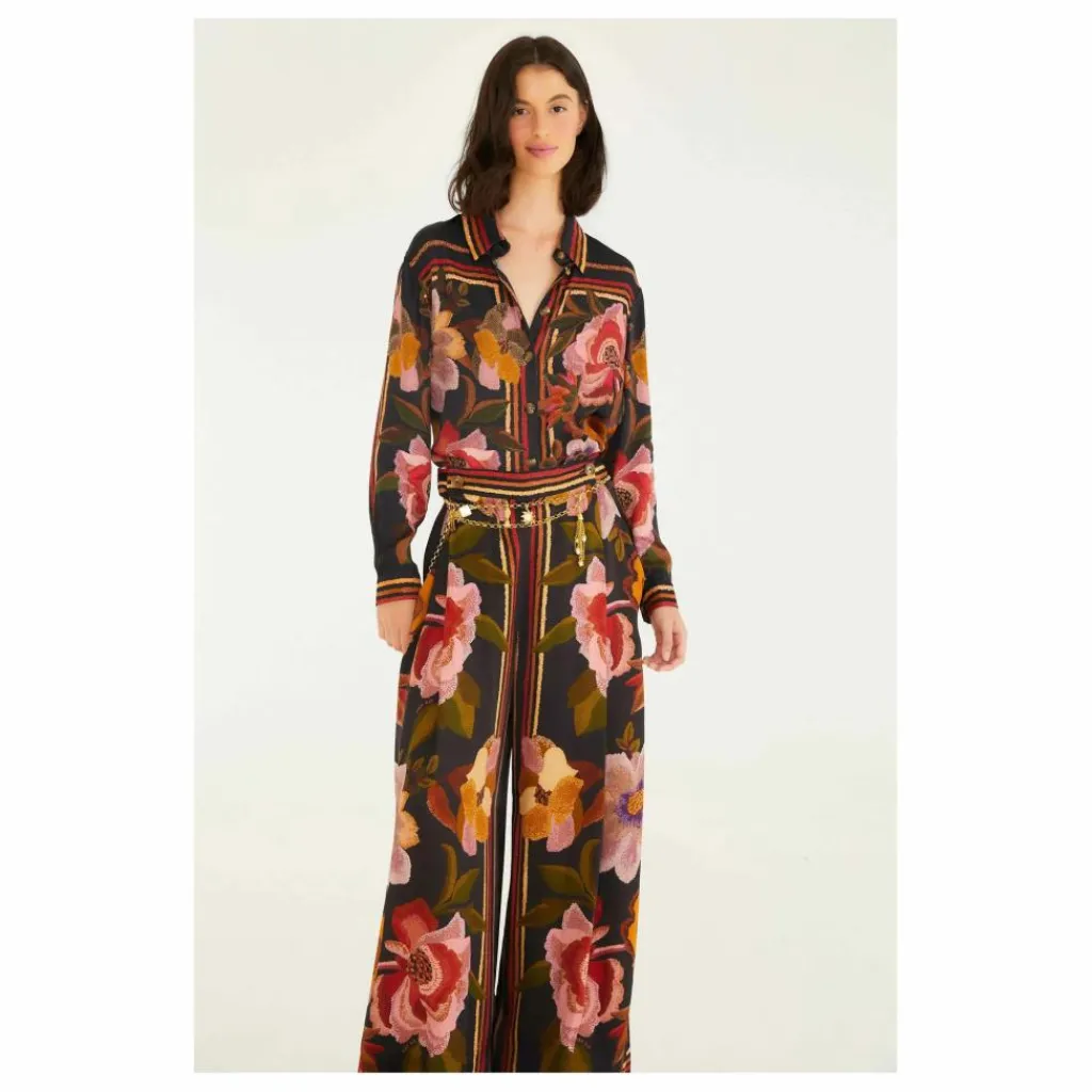 - PANTALON NOIR À FLEURS DE CHENILLE