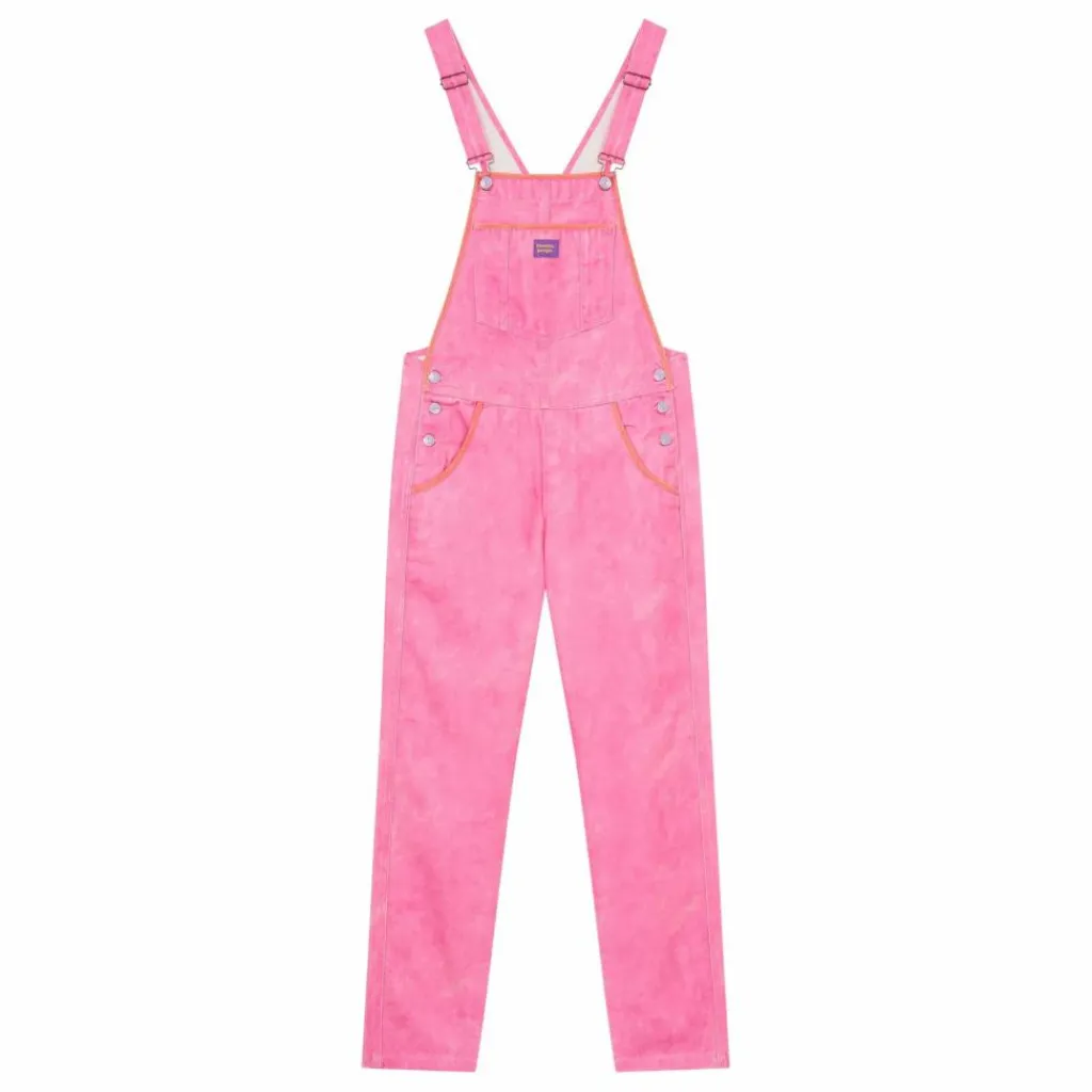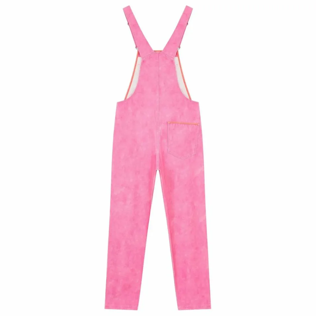 - Longue salopette rose à encolure droite et bretelles réglables avec fermeture salopette. Poches combinées sur le devant, style kangourou. Fermeture par boutons sur les côtés.