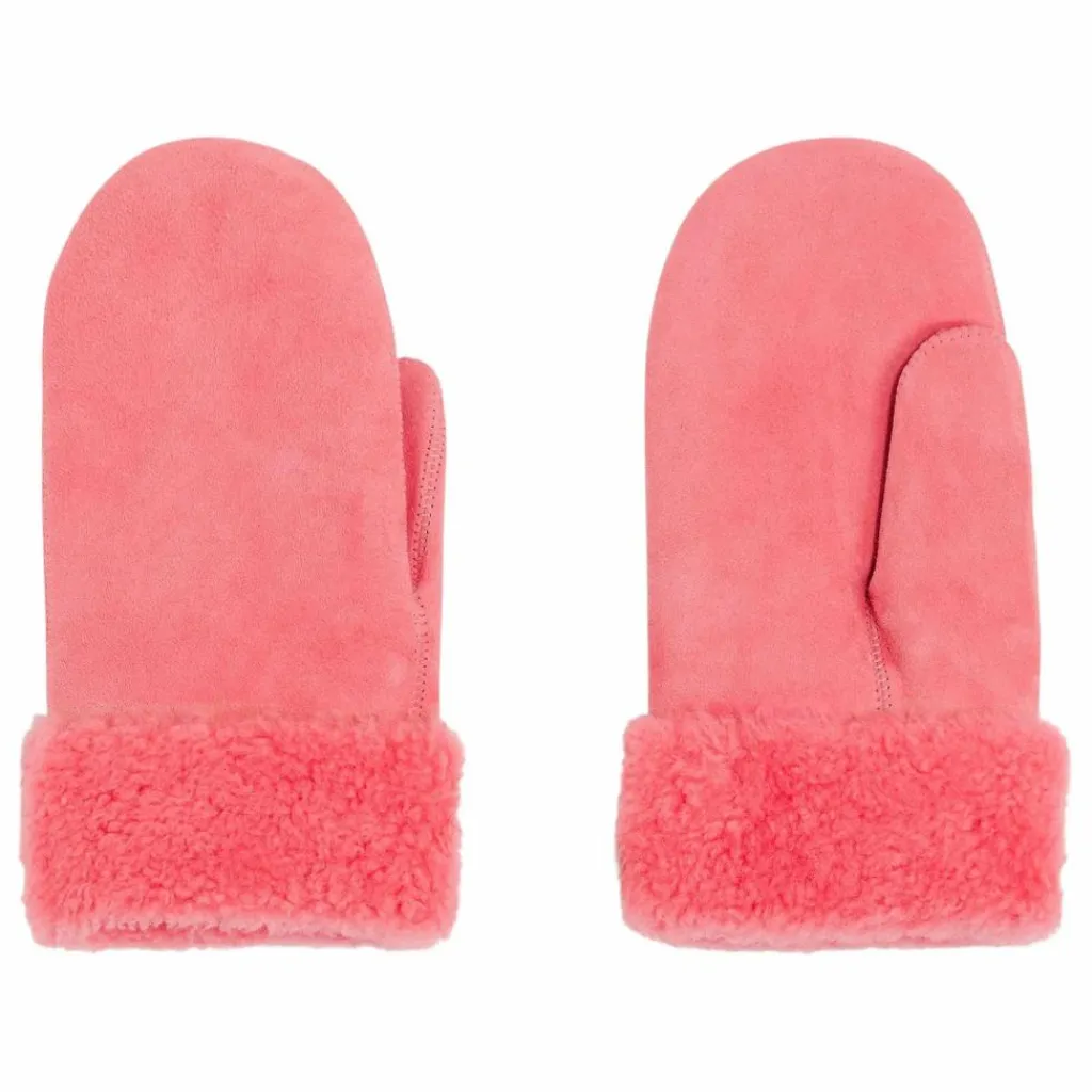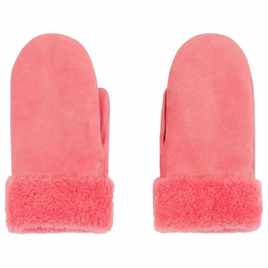 - moufles en peau lainée, poignet laine, ajustement par bouton pression en métal, couture et finition ton sur ton