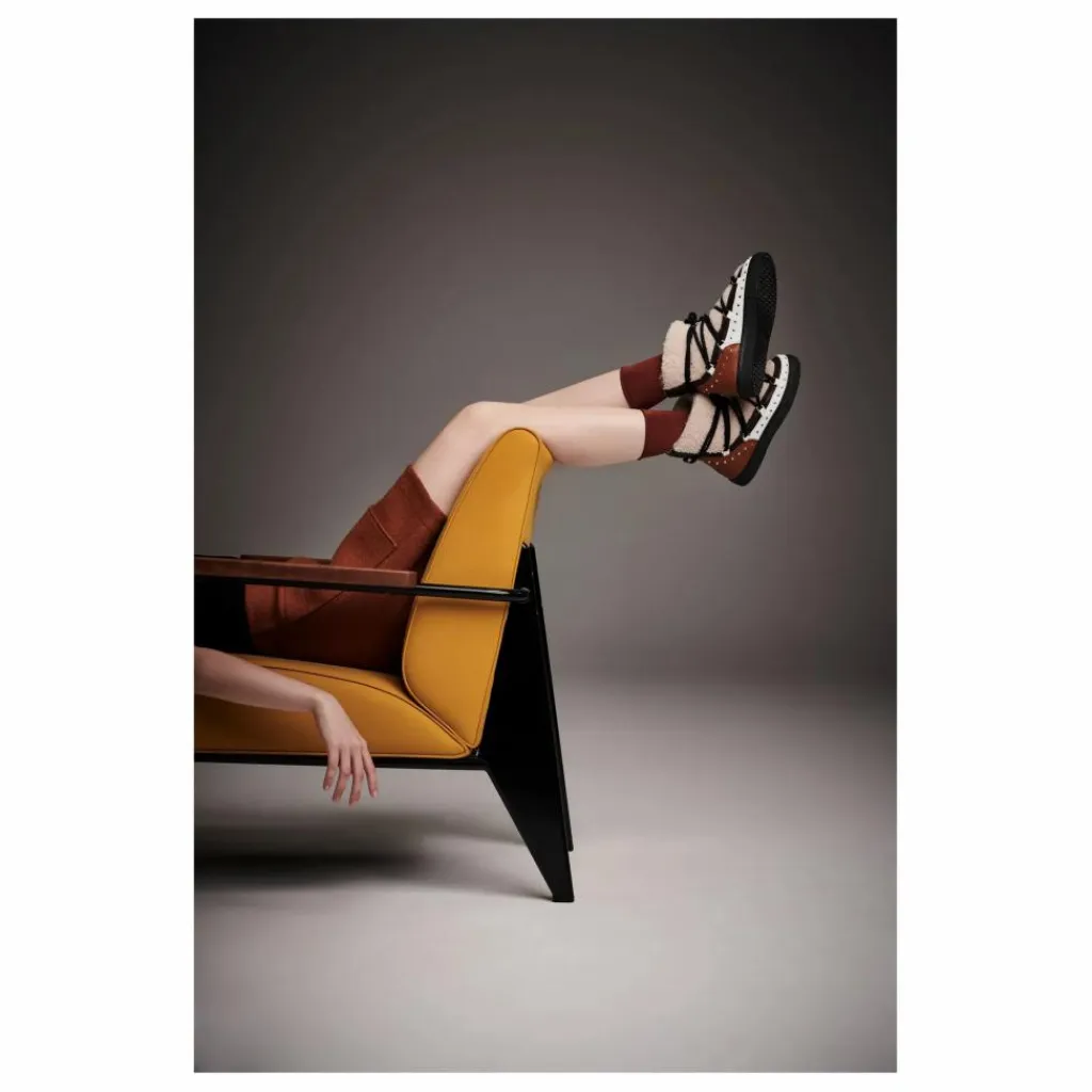 - Tige : 40% cuir de chèvre 55% cuir d’agneau bouclé 5% lacet en coton