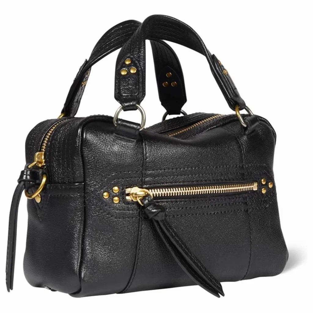 - Sac bowling porté croisé ou à la main. Bandoulière amovible, fermeture zippée avec des liens en cuir.