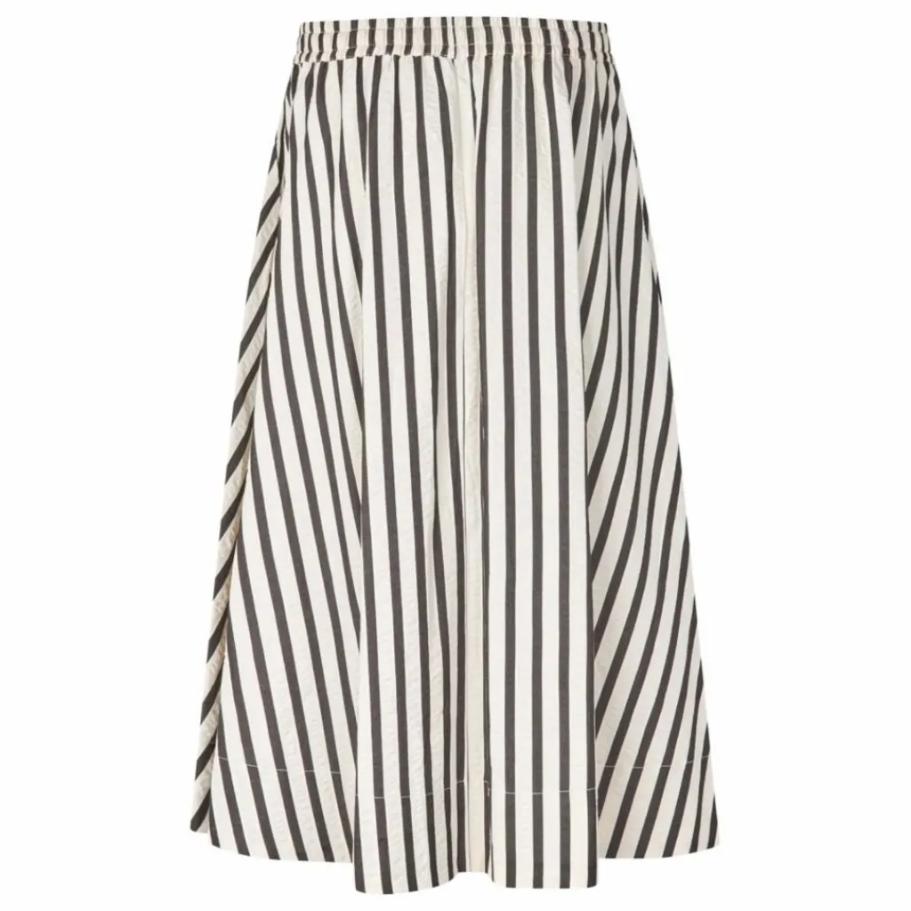 - – Forme A-line flatteuse – Longueur midi – Base crème intemporelle avec rayures verticales noires – Taille élastique avec cordon de serrage ajustable pour un ajustement confortable – Poches latérales – Tissu léger et texturé qui se drape magnifiquement – Associez-le à notre chemise BleekerLL pour un look habillé complet.