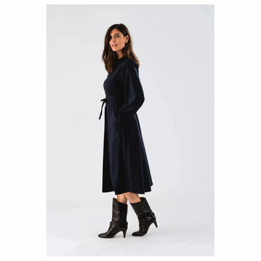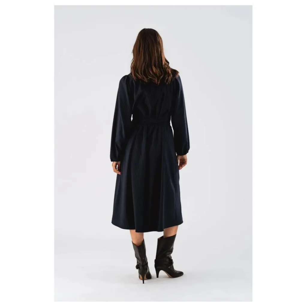 - La robe ParisLL est un modèle féminin et intemporel avec des rayures classiques et des détails élégants. Elle présente un col montant étroit, une encolure en V et des manches longues à poignets élastiques pour un look à la fois décontracté et raffiné. La large ceinture matelassée souligne la silhouette et peut être retirée pour une allure plus décontractée. Les grandes poches plaquées sur le devant ajoutent une touche de luxe décontracté.