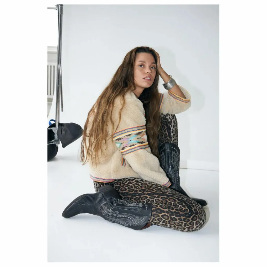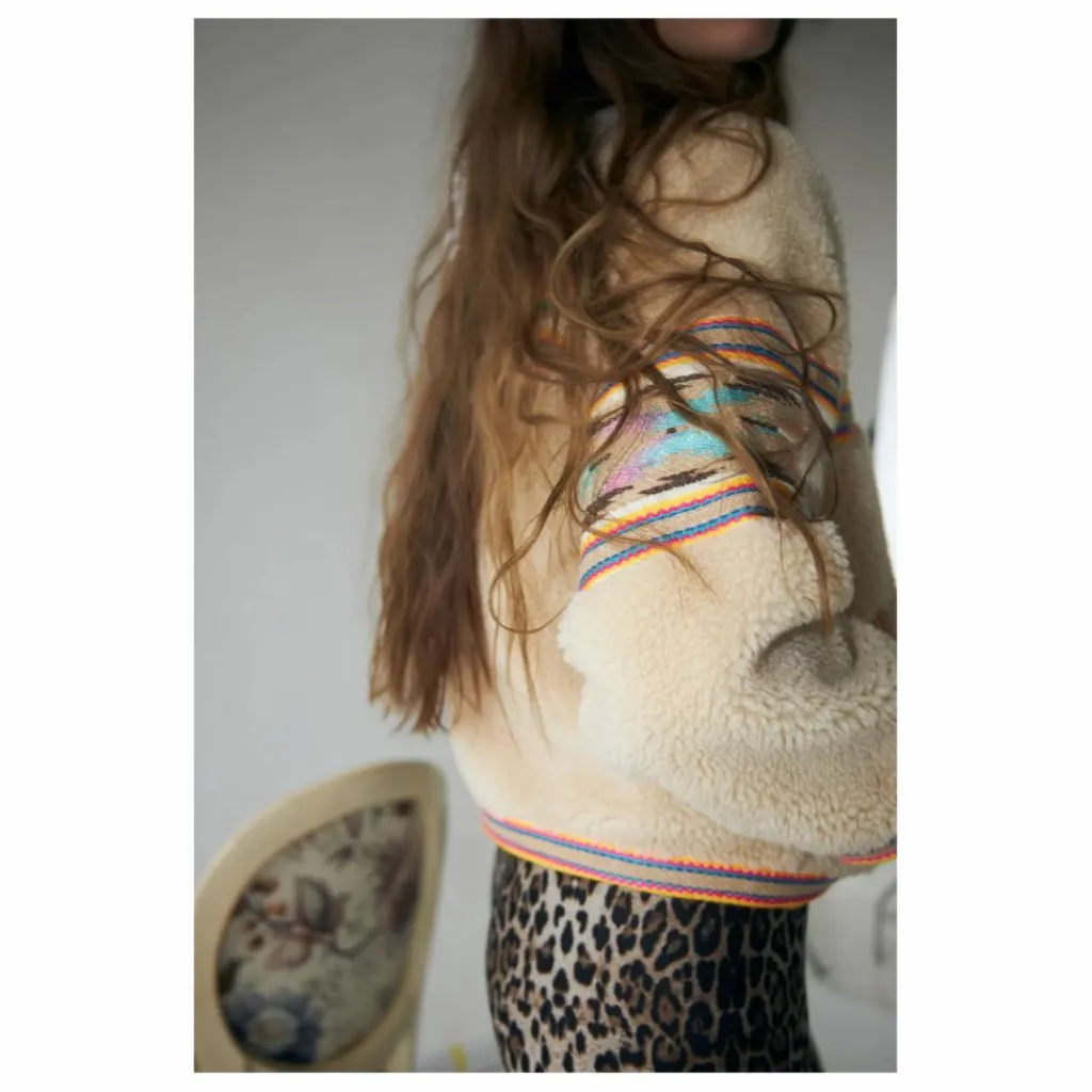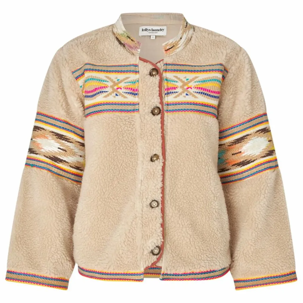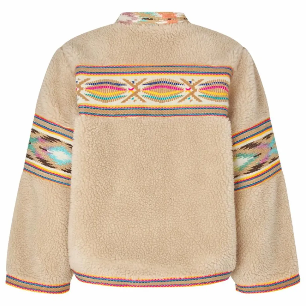 - – Veste teddy douce en beige – Broderies colorées sur la poitrine, le dos, les manches, l’encolure et l’ourlet – Fermeture classique à boutons sur le devant – Coupe décontractée avec encolure ronde