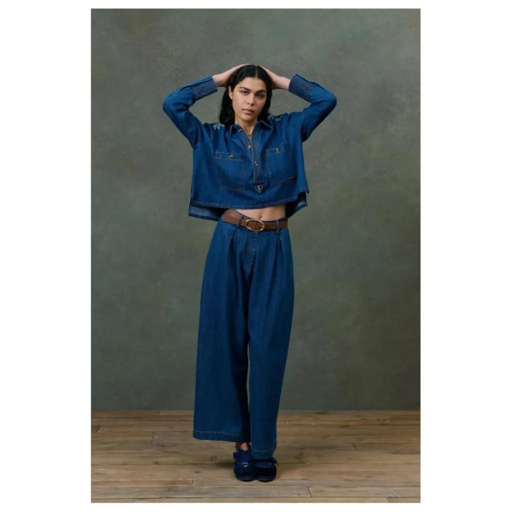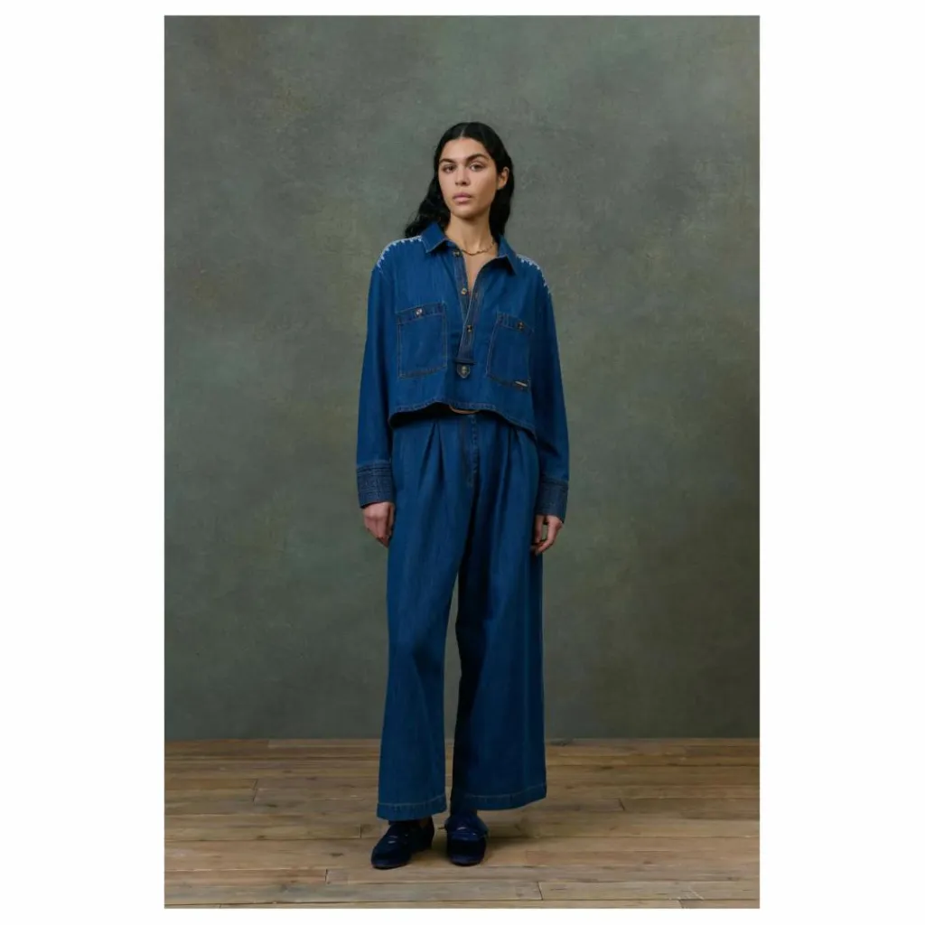 Poignets avec surpiqûres contrastées et patte pressionnée dissimulée.Pièce imaginée à Paris par Marie Pidancet et son équipe.