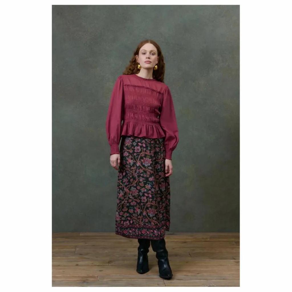 Jupe longue en crêpe fleurie.