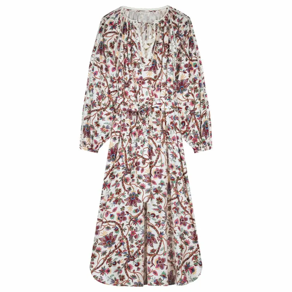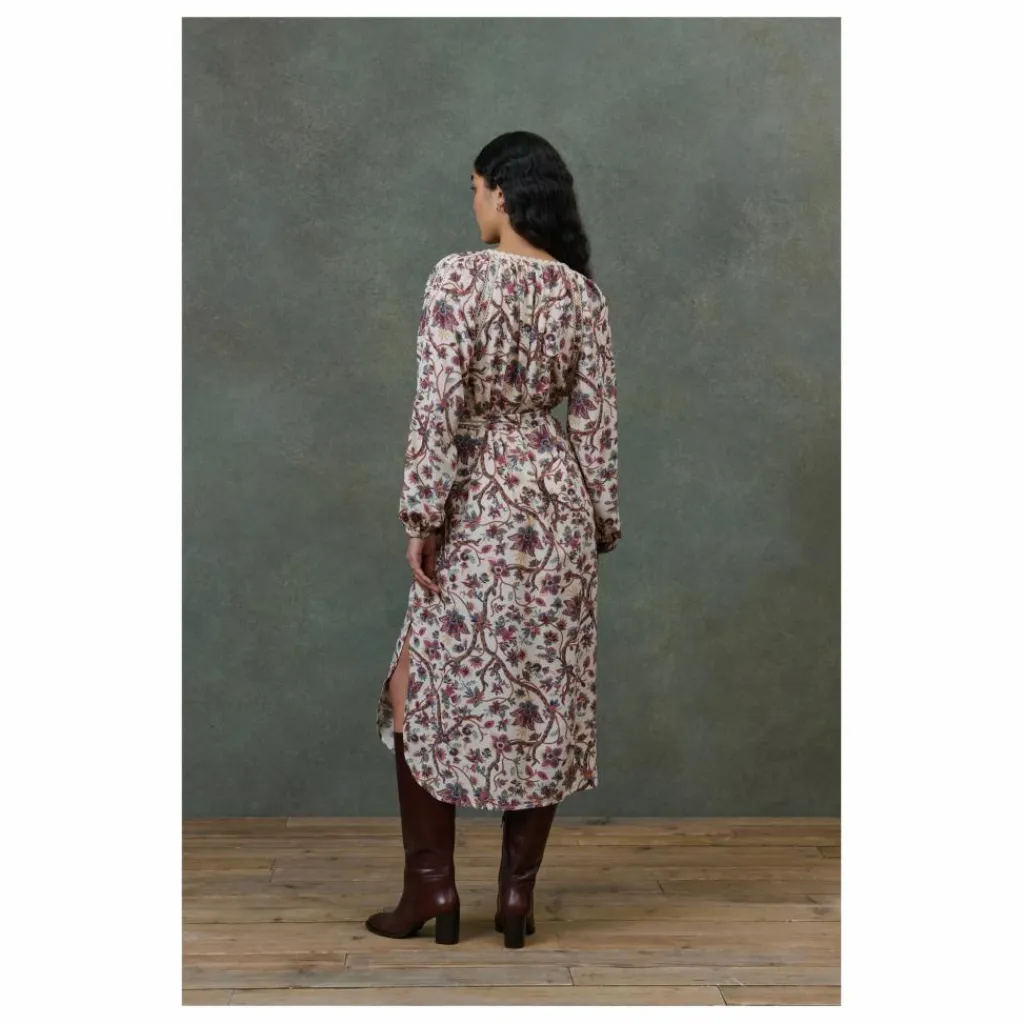 Détails de dentelle incrustée autour du V, aux emmanchures et au-dessus des manches.