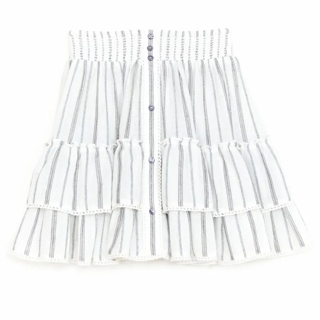 - MINI-JUPE RAYÉE EN COTON TISSÉ ET GARNIE DE DENTELLE À ÉTAGE