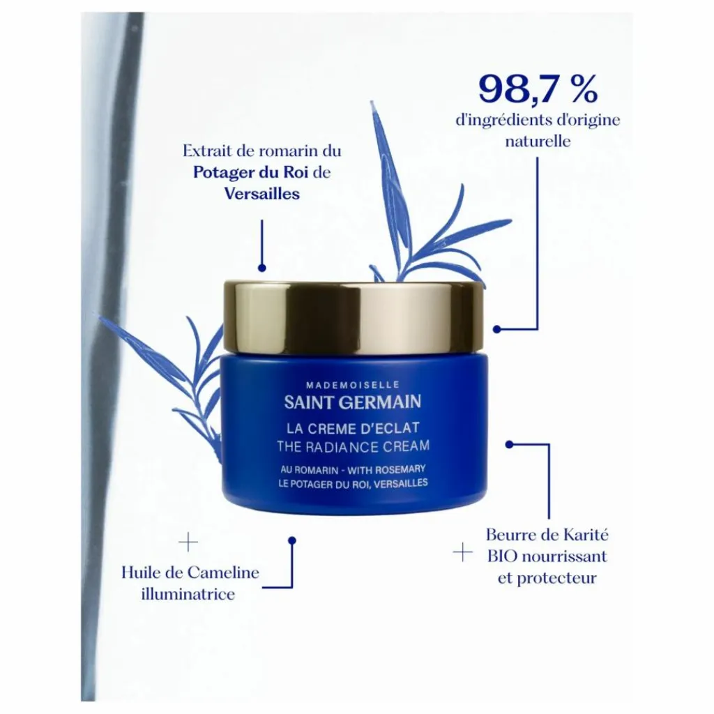 - Issue du Potager du Roi à Versailles, cette crème d’éclat concentre les bienfaits du romarin pour hydrater, protéger et raviver l’éclat naturel de la peau. Idéale en prévention des premiers signes de l’âge ou en milieu urbain, elle forme un bouclier végétal contre les agressions extérieures. Un soin quotidien, à la croisée de l’élégance et du patrimoine botanique royal.