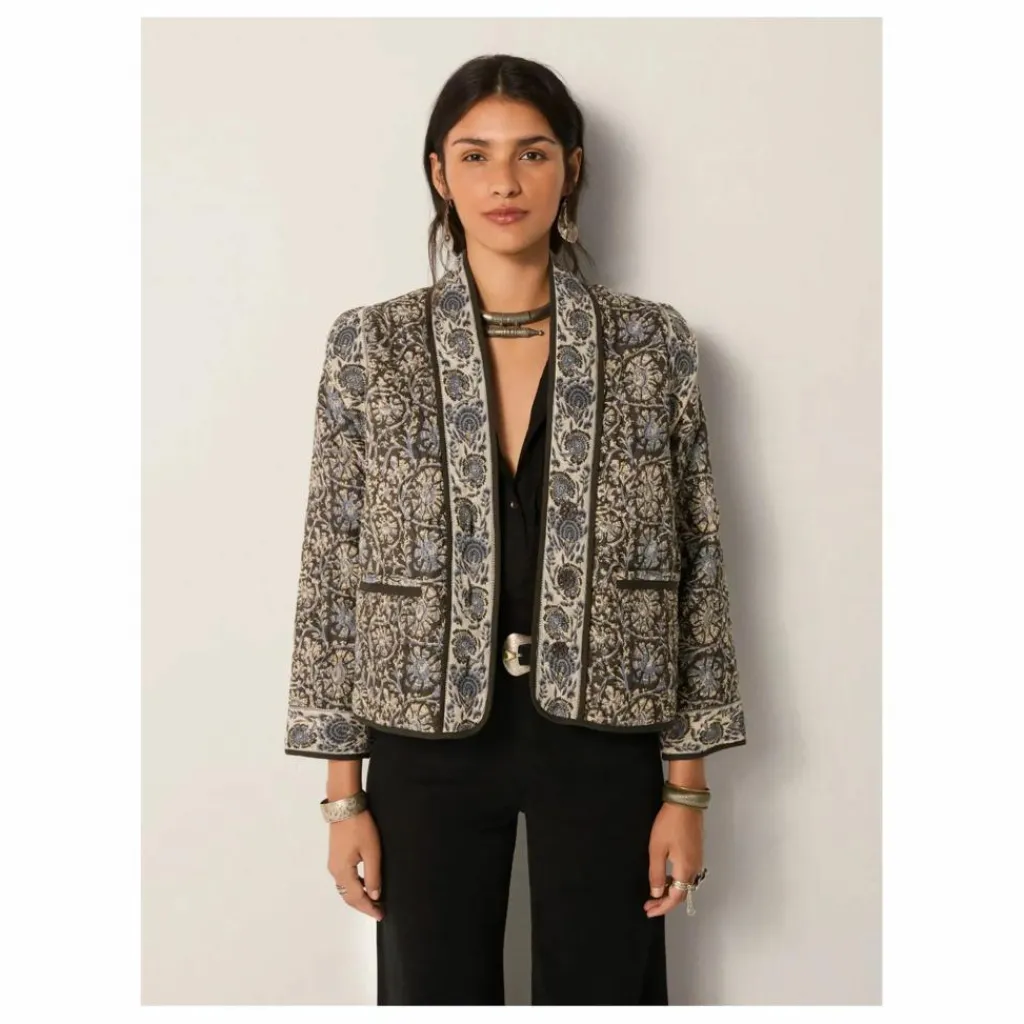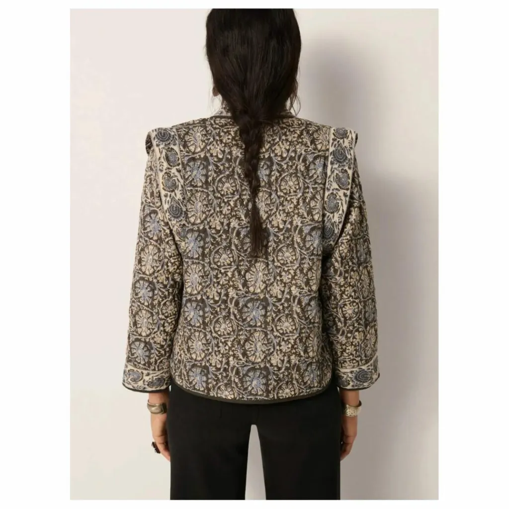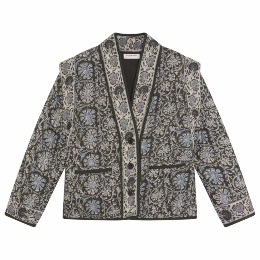 - La veste Madurai Sugata Blue Orchid de Maison Hotel est une veste en coton texturé et légèrement matelassé, offrant une silhouette à la fois décontractée et structurée.