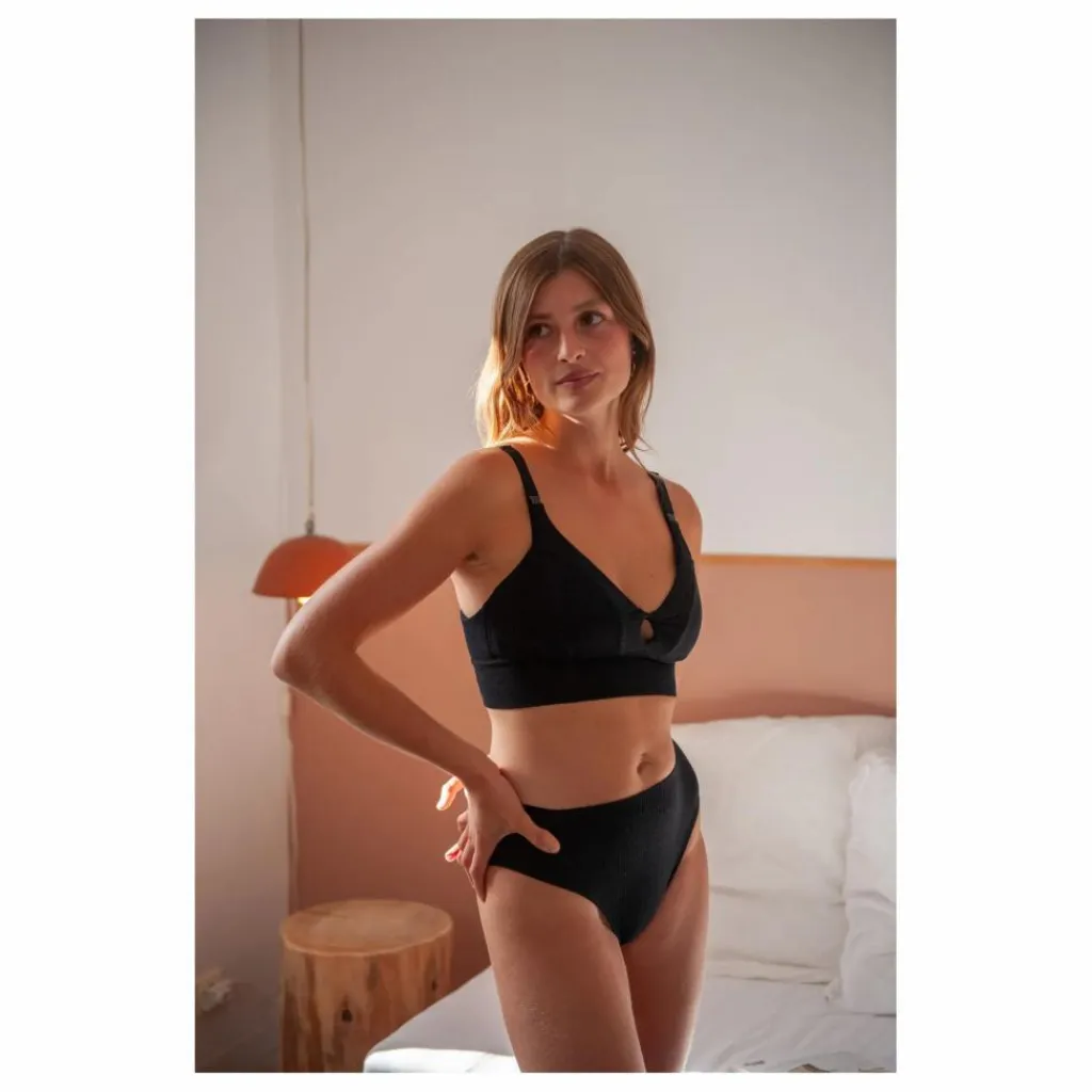 Fabriqué au Portugal, ce soutien-gorge utilise le micromodal, une matière douce et respirante issue de la cellulose de bois de hêtre certifié FSC. En plus de son impact écologique réduit par rapport au coton, le micromodal sèche rapidement, conserve sa forme et limite la prolifération des odeurs.