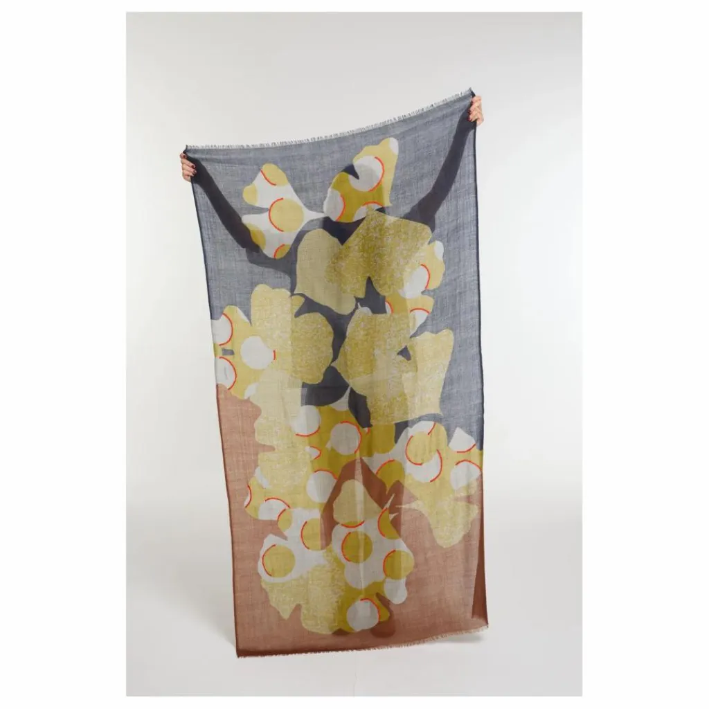 - À l’occasion des 15 ans de Mapoésie, le motif emblématique Éternel est de retour. Inspiré des feuilles de Ginkgo biloba, symbole de longévité et de renouveau, ce foulard puise son imaginaire dans la grâce majestueuse de cet arbre millénaire. Imprimé au cadre, il est subtilement rehaussé d’une broderie faite main, qui contraste avec les couleurs du motif pour en souligner toute la richesse graphique. Une pièce poétique et précieuse, hommage à l’ADN de la marque.
