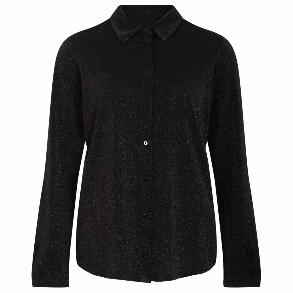 - Chemisier lurex Momonì, coupe confortable soulignée par l’ourlet légèrement arrondi et les délicats poignets à bande.