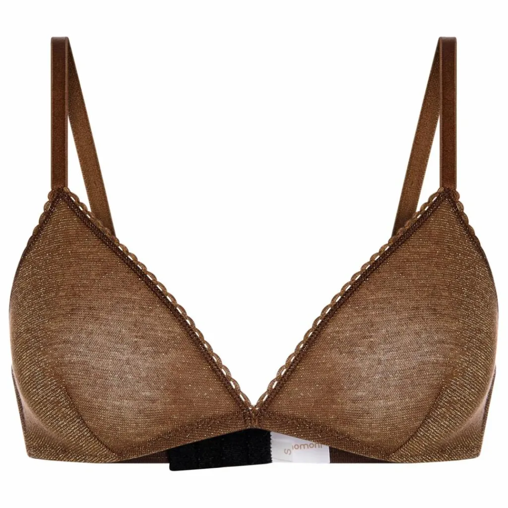 - Soutien-gorge icône de Momoni, Amethist a des bonnets triangulaires finis avec capuchons élastiques. Fabriqué en doux jersey stretch lurex. Coupe confortable et décolleté avec bretelles fines et crochets réglables à l’arrière. Made in Italy.