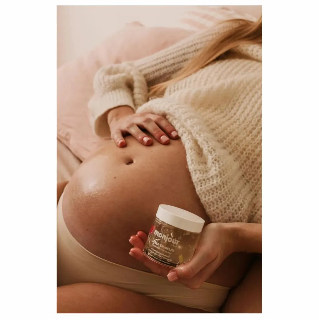 Dès le premier mois de grossesse et en post-partum, cette huile-en-gelée prévient les vergetures, nourrit intensément et apaise la peau. Sa texture innovante se transforme en huile au contact de la peau pour une application fluide et réconfortante, sans fini gras.