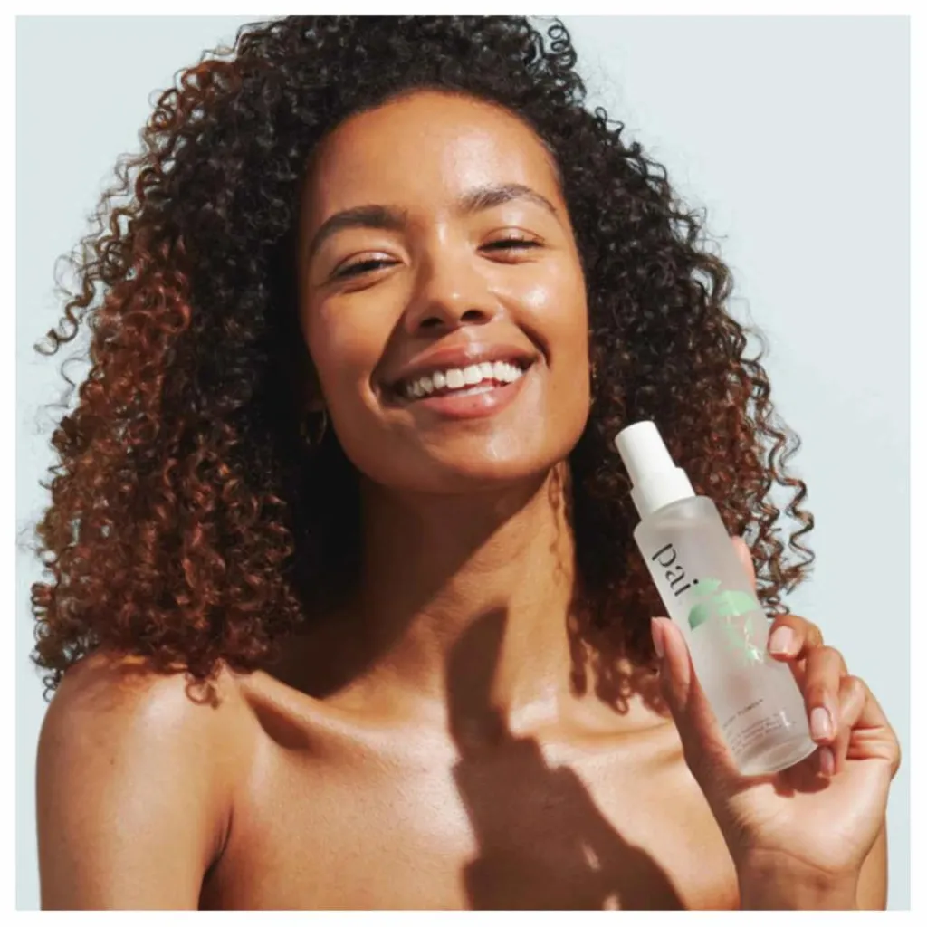 - Fermez les yeux et vaporisez sur la peau après l’avoir nettoyée. Suivez avec un le sérum, une crème hydratante ou une huile de votre choix, et vaporisez entre chaque étape pour fixer l’hydratation.