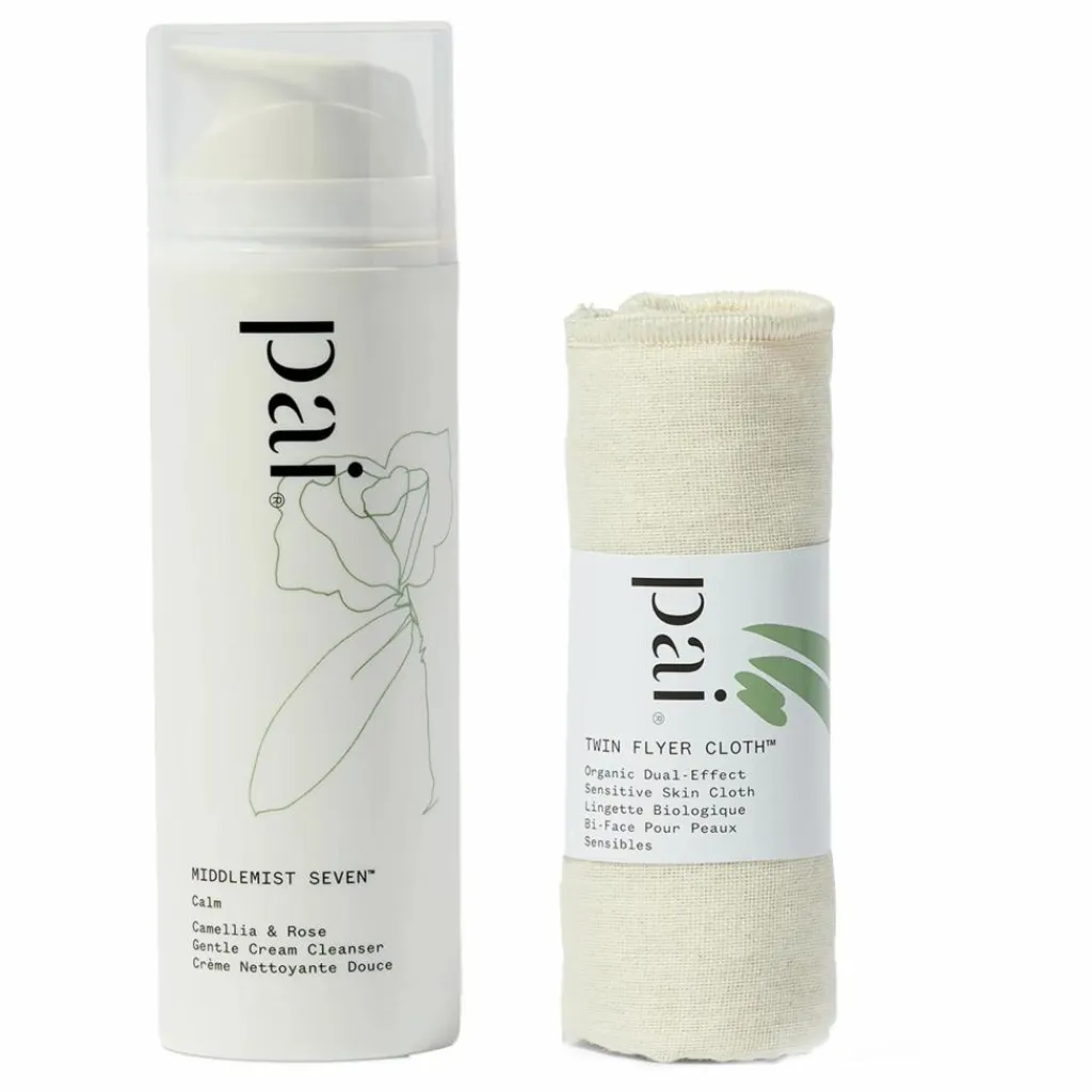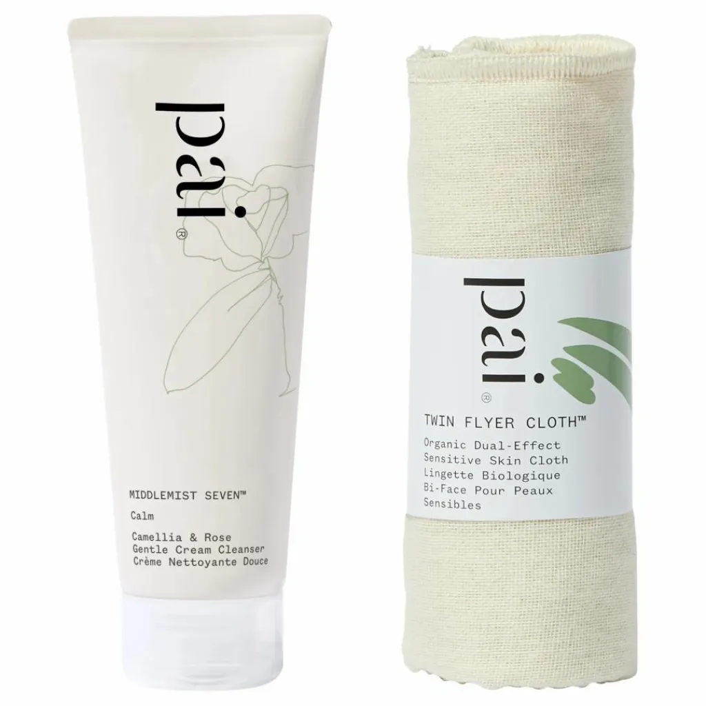 - Massez le nettoyant en douceur sur peau sèche, sans oublier le cou. Humidifiez la lingette en mousseline Twin Flyer, puis essuyez votre visage.