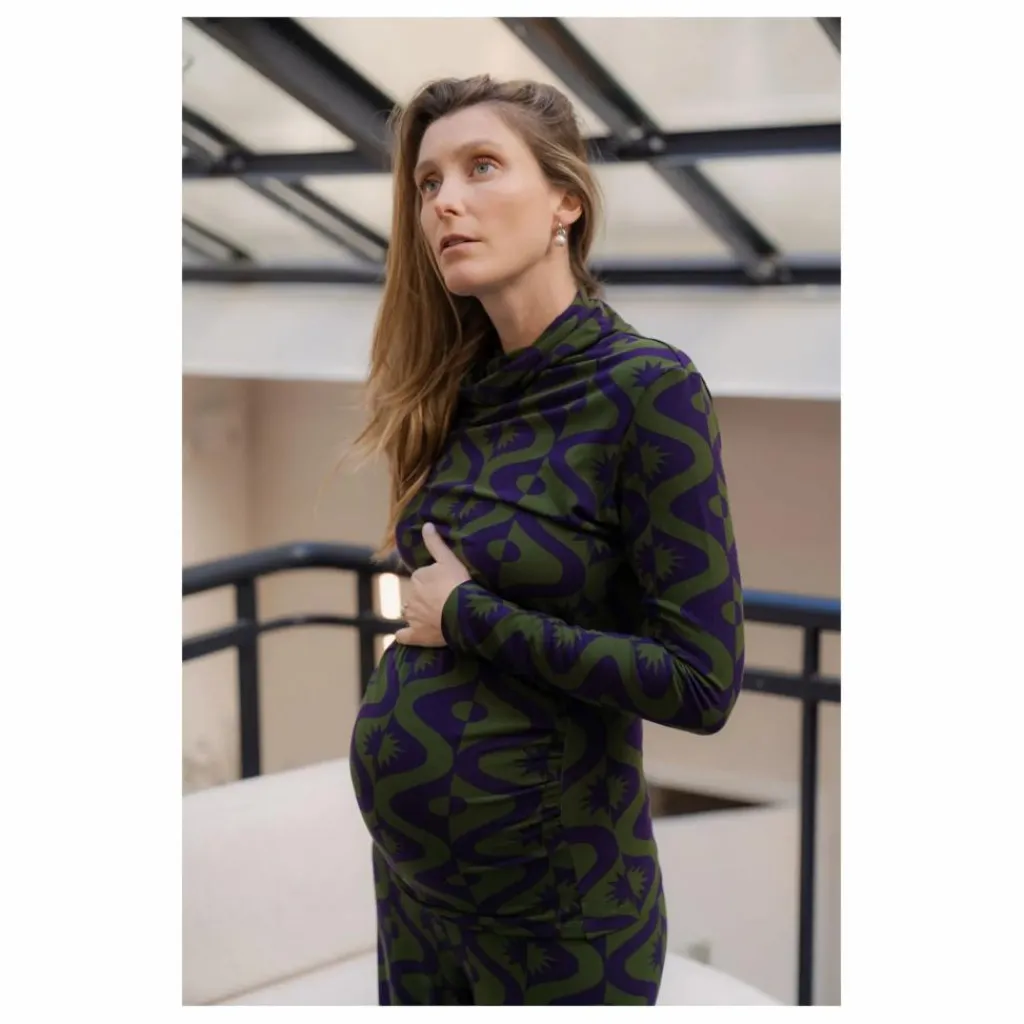 - – Fronces de 15 cm sur les 2 côtés en bas du devant du haut, ce qui permet au top d’épouser parfaitement la forme du ventre.