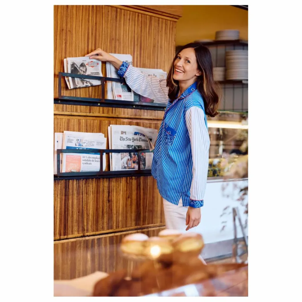 - Cette superbe chemise Paolina est un must-have pour les femmes qui souhaitent améliorer leur garde-robe avec une chemise originale. L’association du bleu classique et de l’imprimé bandana fait de cette chemise un vêtement facile à porter qui dégagera toujours un charme sophistiqué et sans effort.