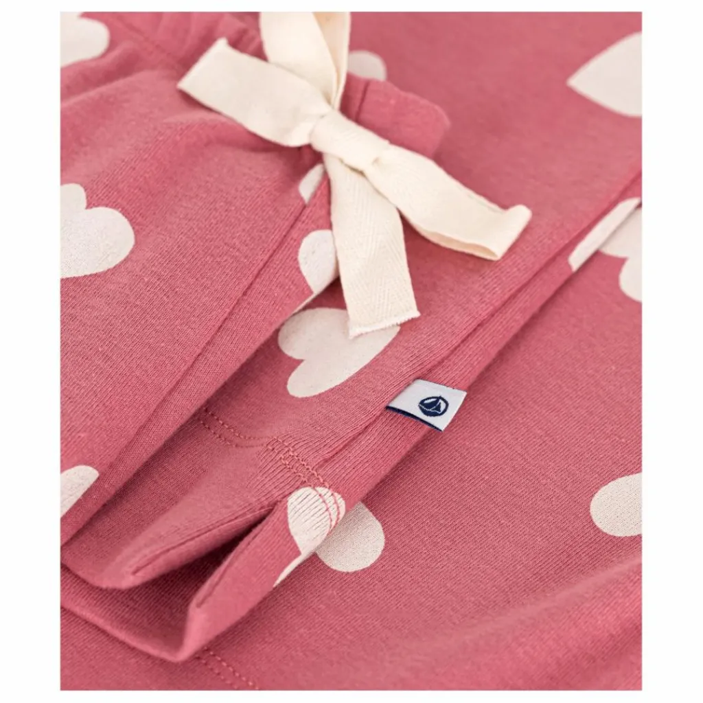 - Pyjama en côte 1×1, notre matière emblématique, imprimée avec notre motif cœur dans le coloris de la saison.