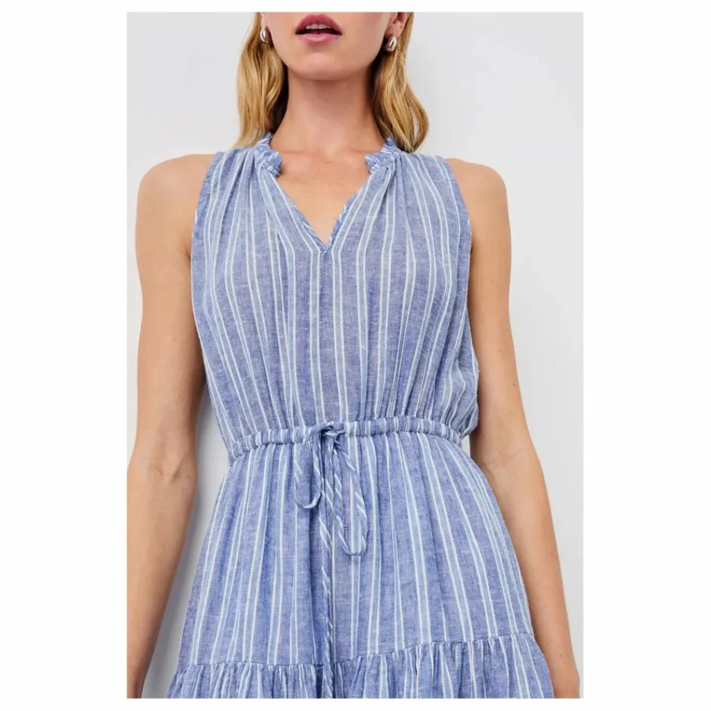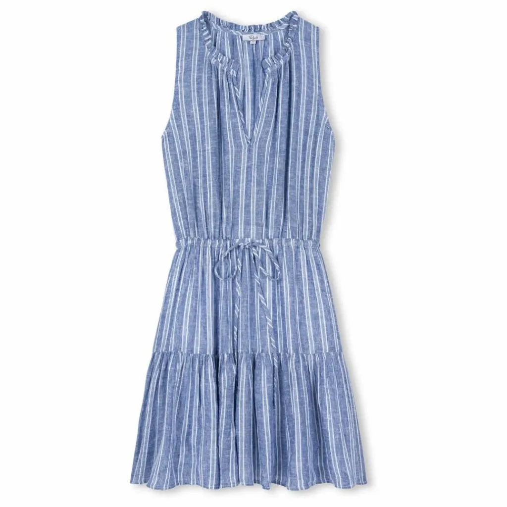 - Confectionnée en lin doux et luxueux et dotée d’un cordon de serrage ajustable à la taille, la robe Albany est une mini-robe légère qui met l’accent sur le confort. Elle est dotée d’un col à volants et d’une jupe à volants pour une touche de féminité.