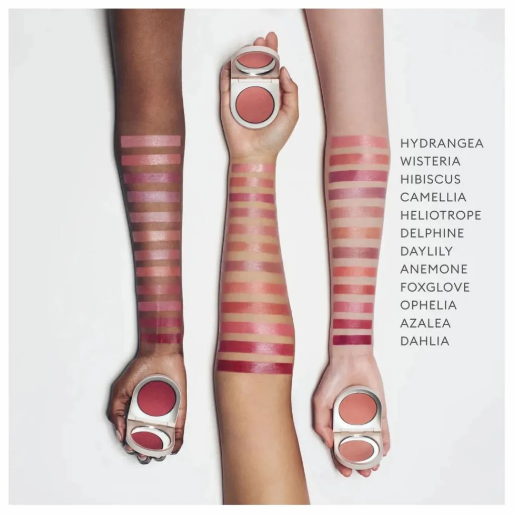 - Du bout des doigts ou en faisant tourner la couleur avec un pinceau, appliquer sur les joues et estomper vers le haut. Ajoutez-en d’autres pour renforcer la couleur et l’intensité si vous le souhaitez. Peut également être appliqué sur les lèvres.
