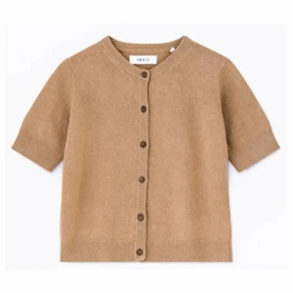- Élégant cardigan à manches courtes avec col rond et fines côtes.