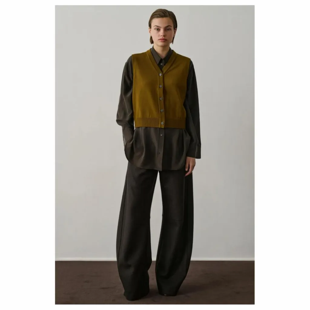 - Cardigan court sans manches ,Coupe près du corps,Sans manches,Encolure en V,Ouverture boutonnée devant, Finition bord côte et col en doube épaisseur