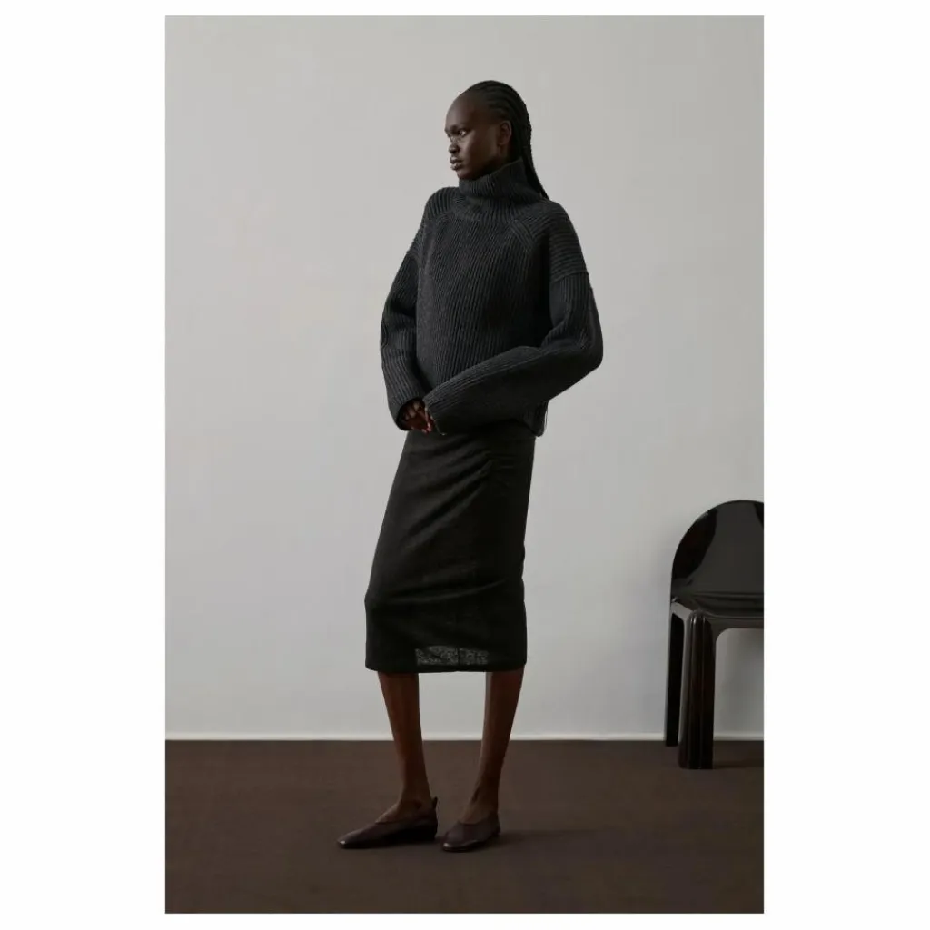 - Pull manches longues à côtes feutré,coupe droite oversize,Manches longues,Col roulé, côtes feutrées
