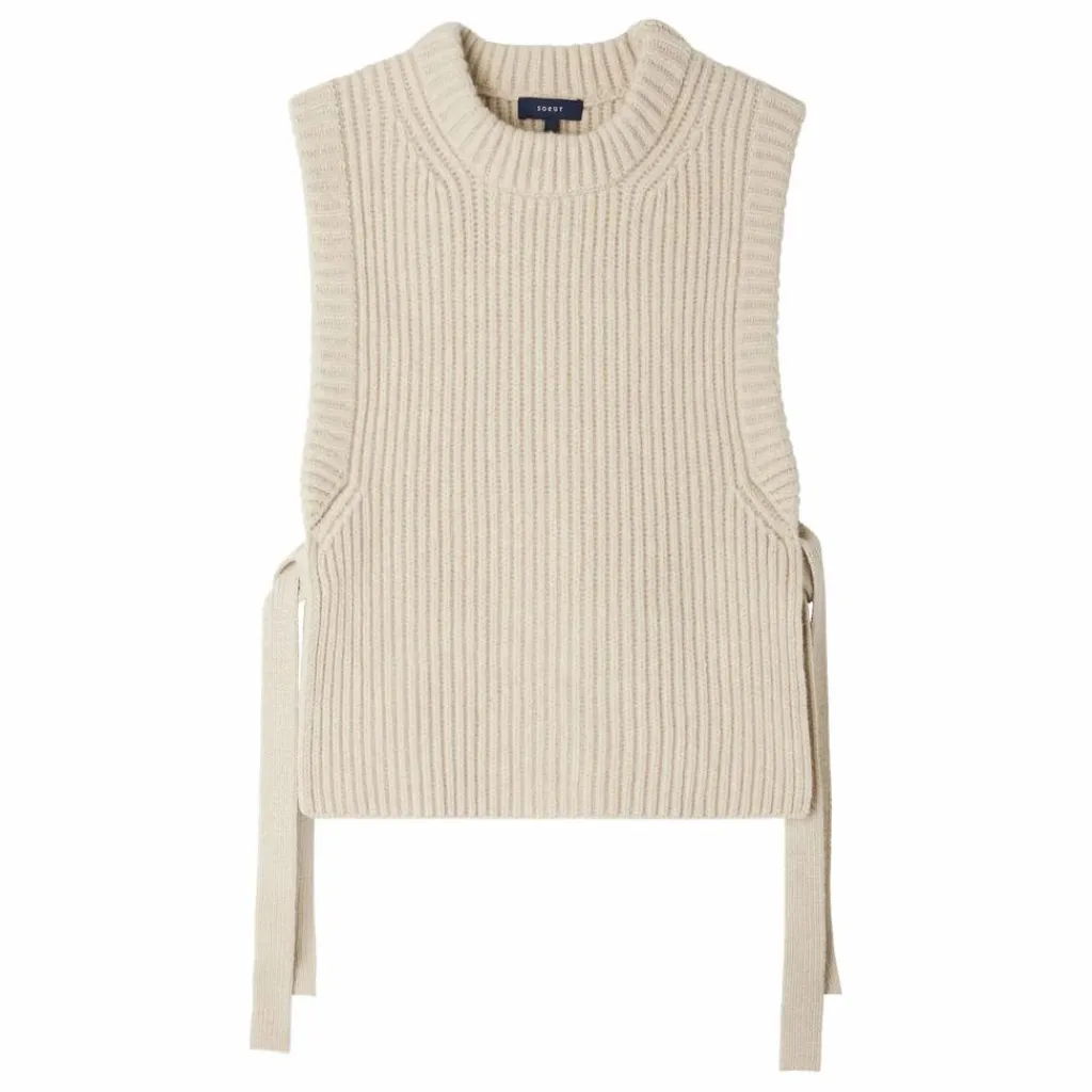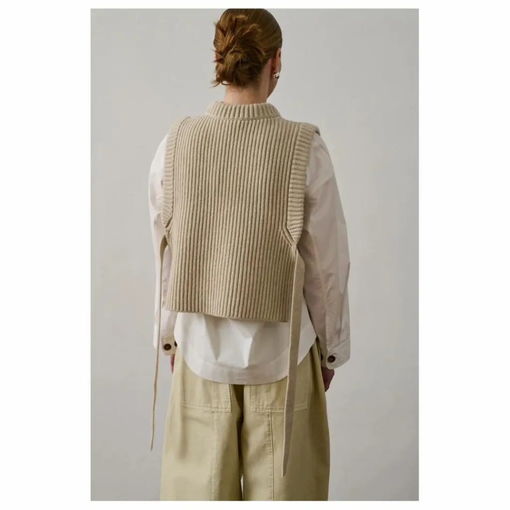 - Plastron sans manches côtelé,coupe droite,sans manches,col rond,Liens de serrage sur les côtés, ouvert sur les côtés,jeu de côtes sur le corps,