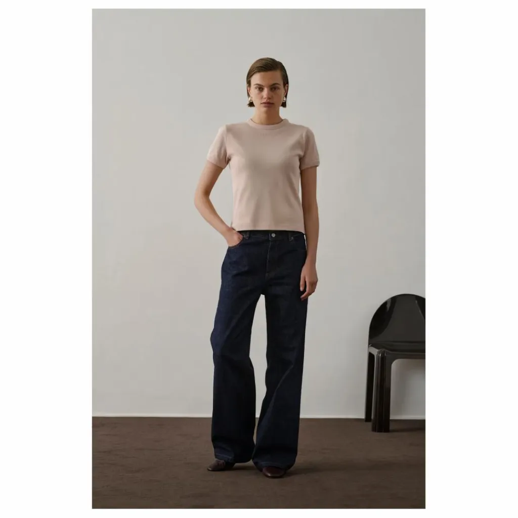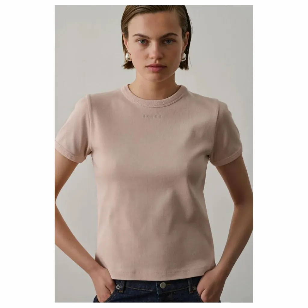 - T-shirt côtélé et brodé,Coupe étroite,Manches courtes,Col rond,logo sœur brodé sur la poitrine
